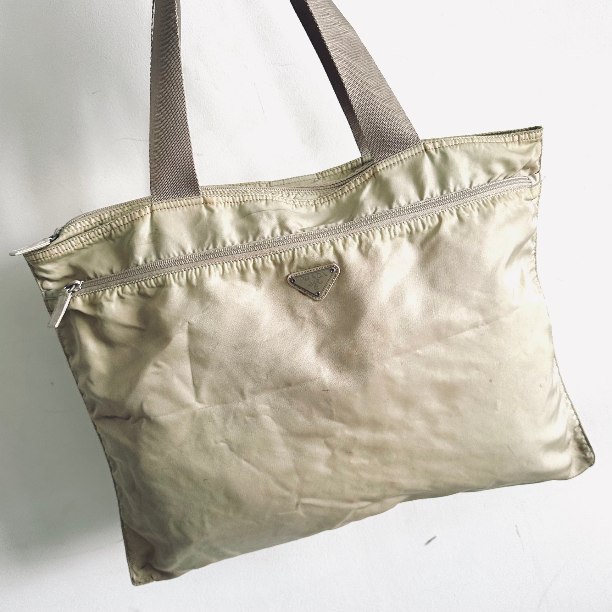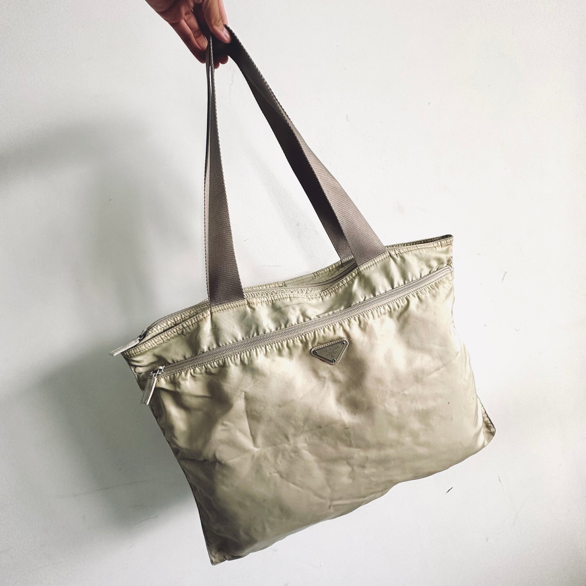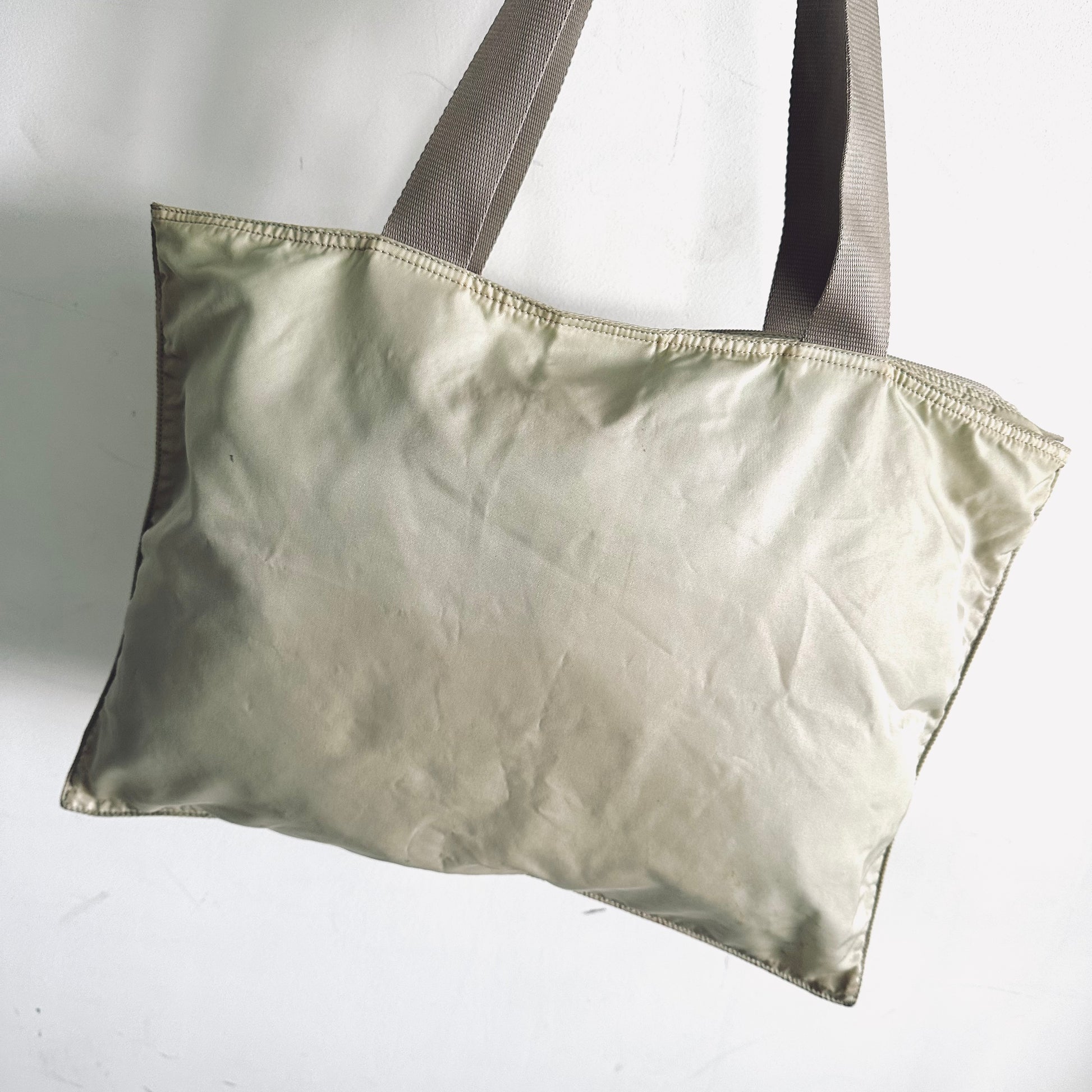 Prada Cream White Vela Classic Logo Wide Shopper Shoulder Tote Bag
