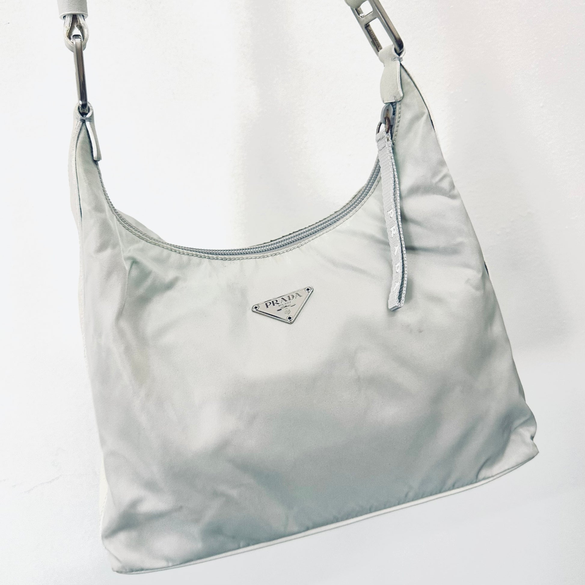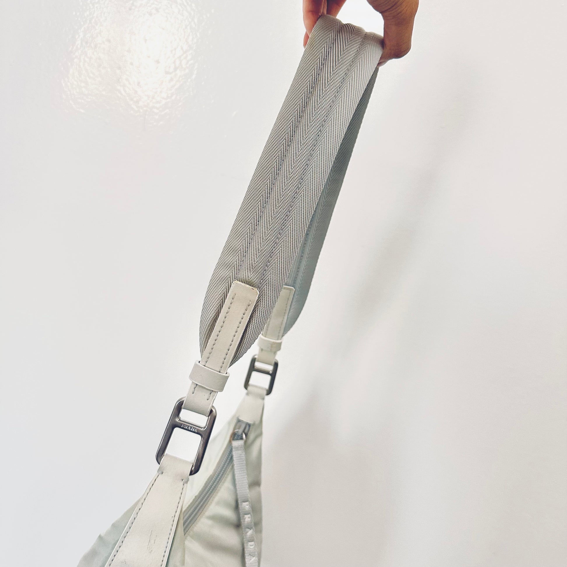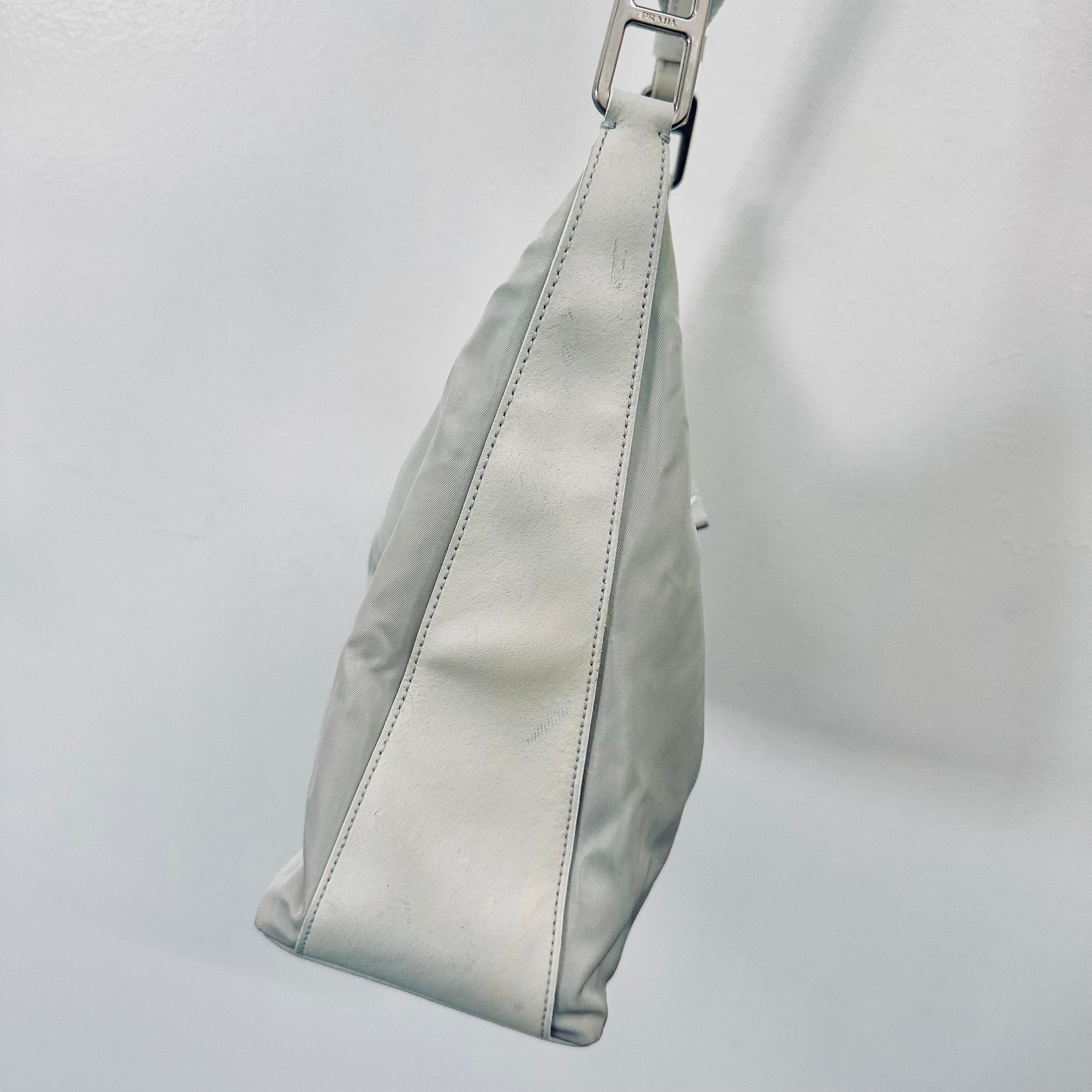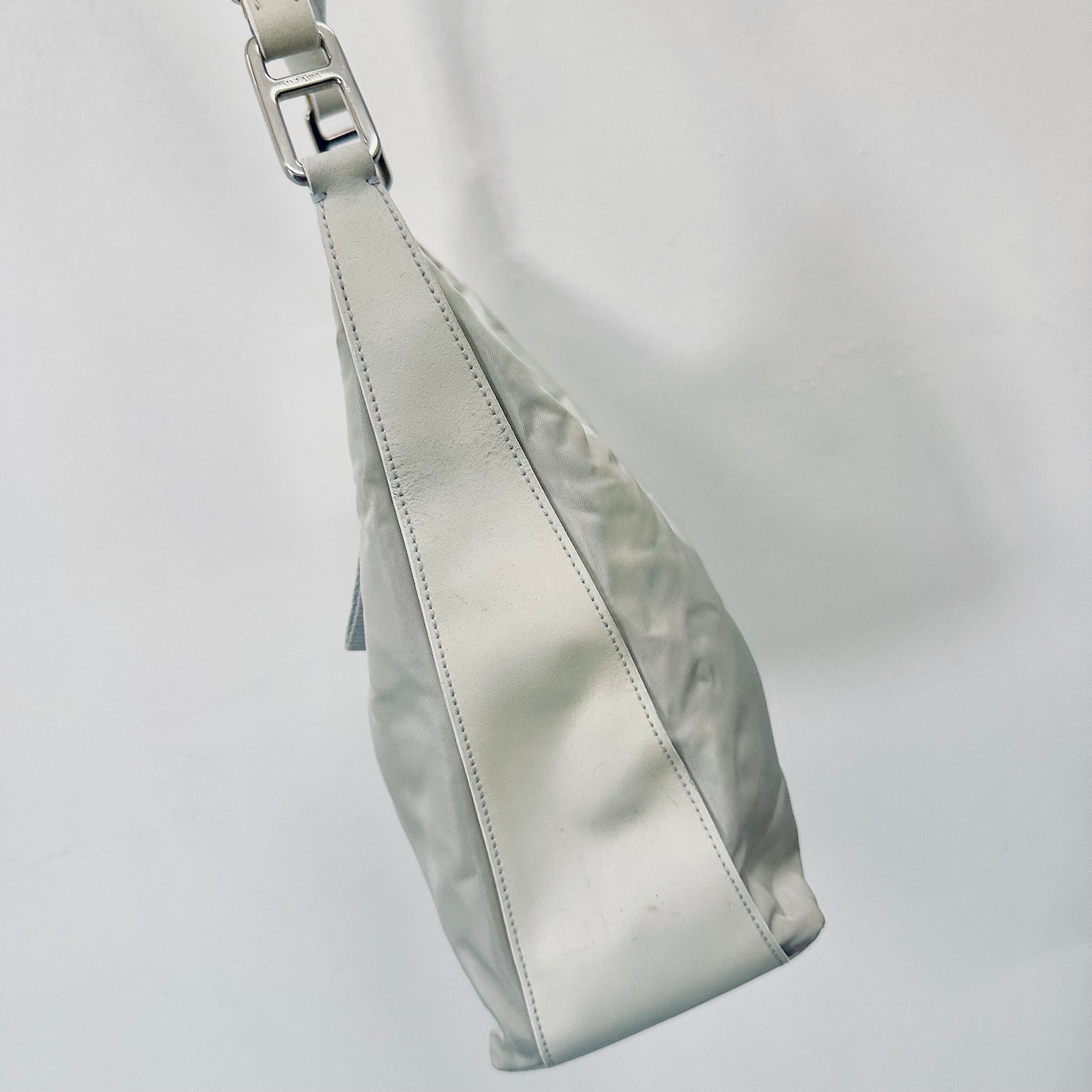 Prada Cristallo Light Grey Tessuto Summer Nylon Classic Logo Hobo Baguette Shoulder Sling Bag