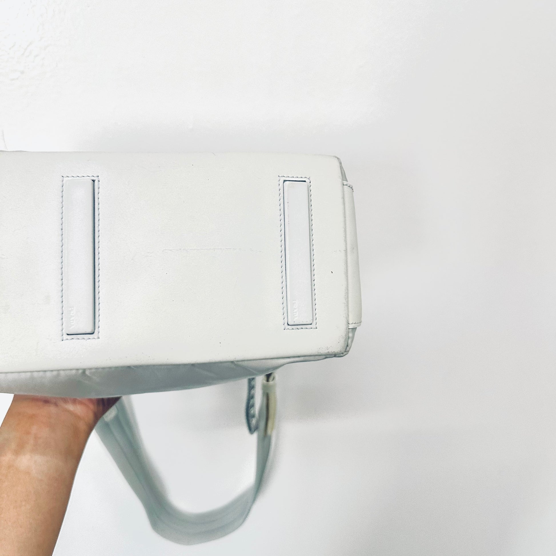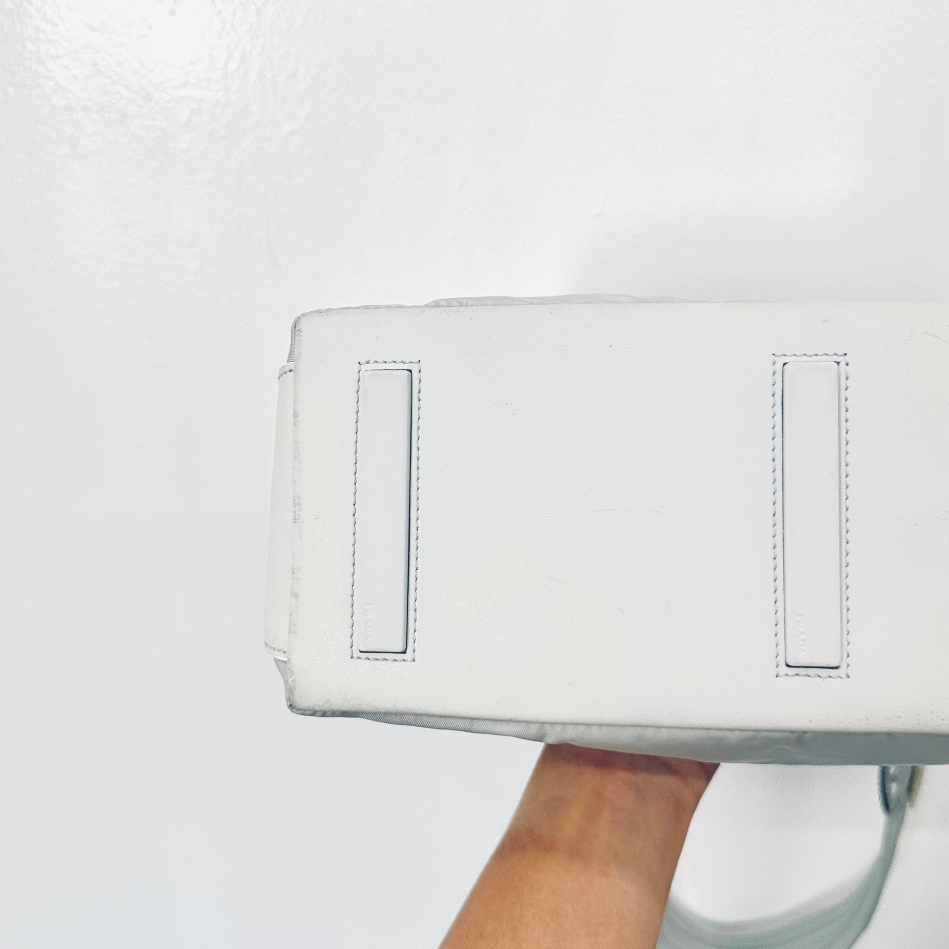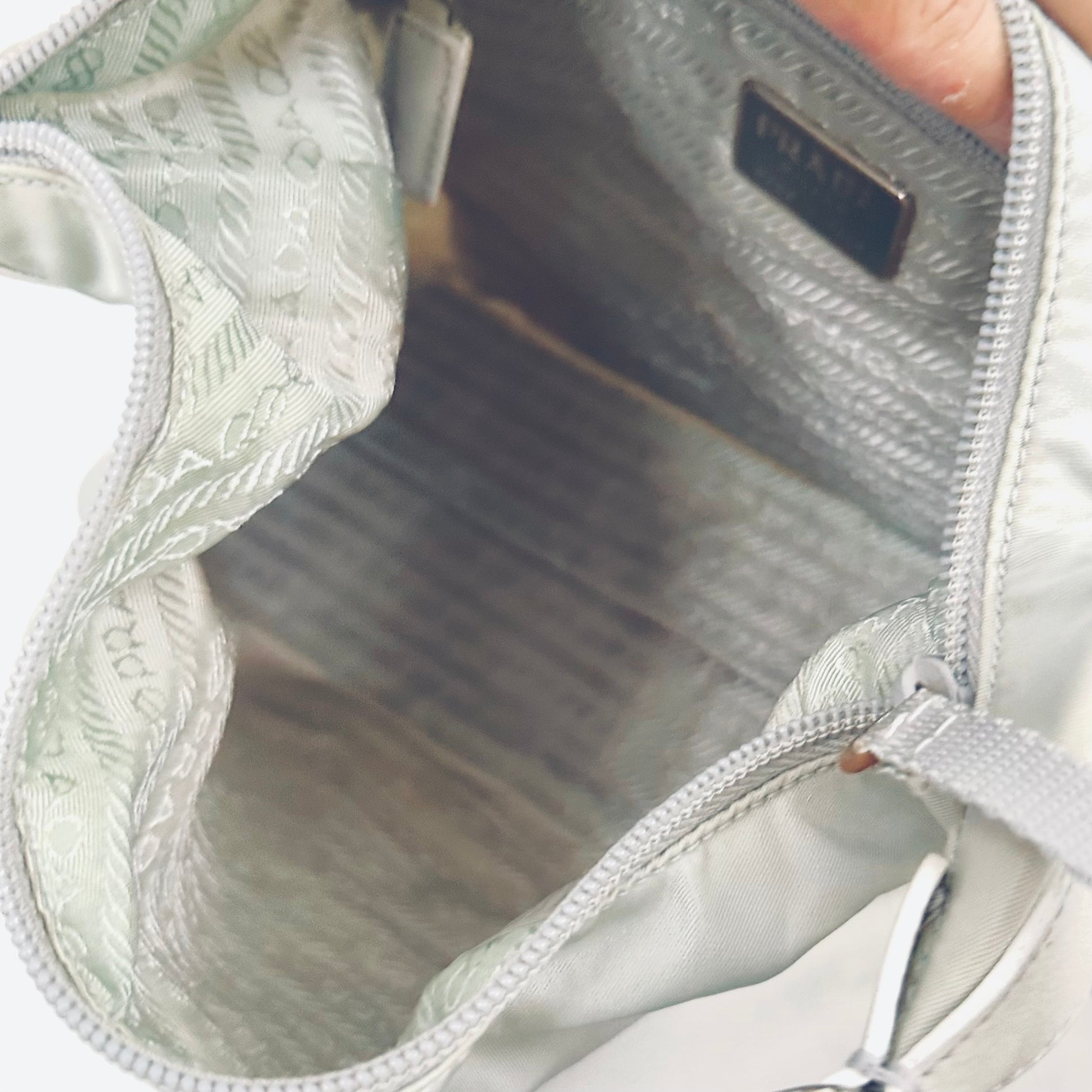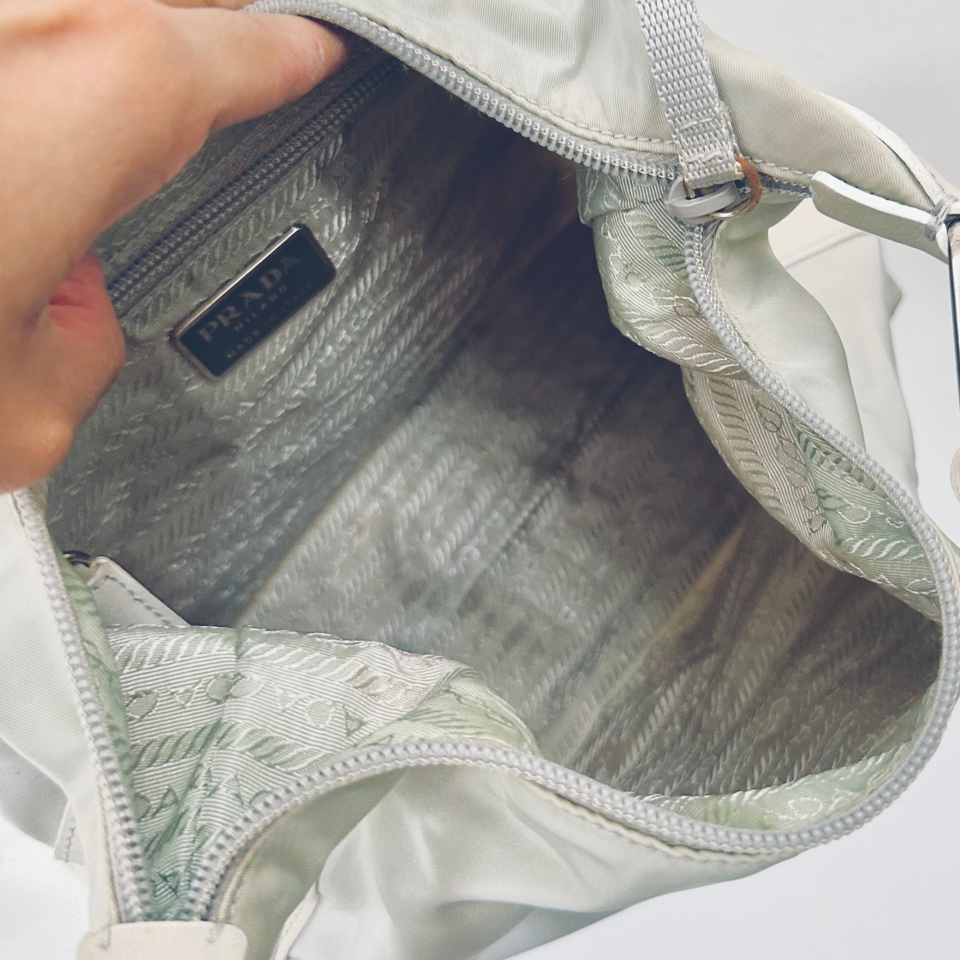 Prada Cristallo Light Grey Tessuto Summer Nylon Classic Logo Hobo Baguette Shoulder Sling Bag