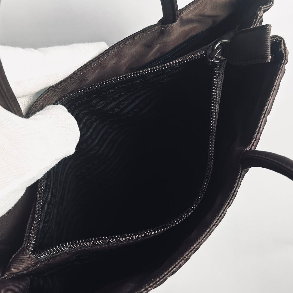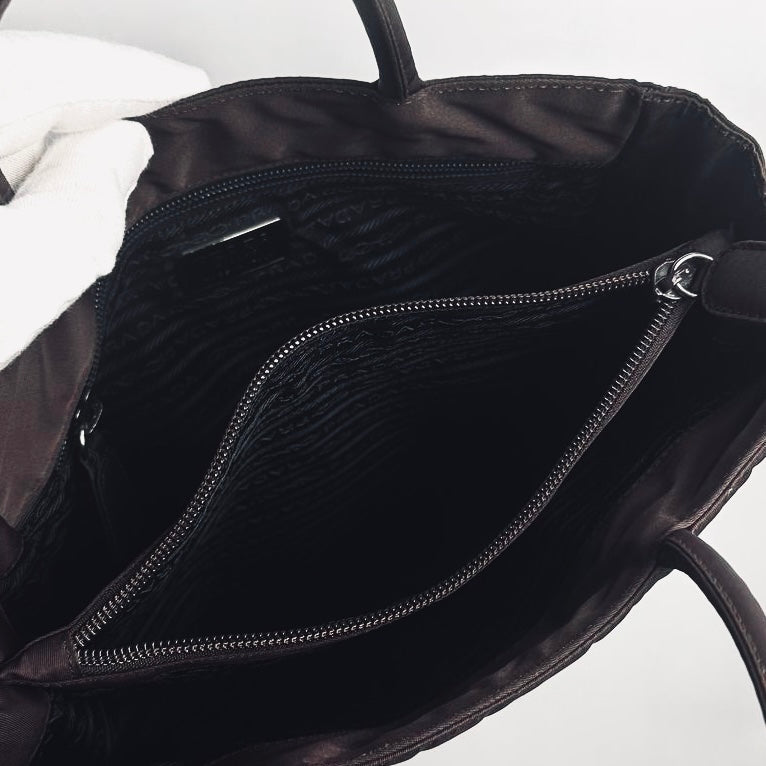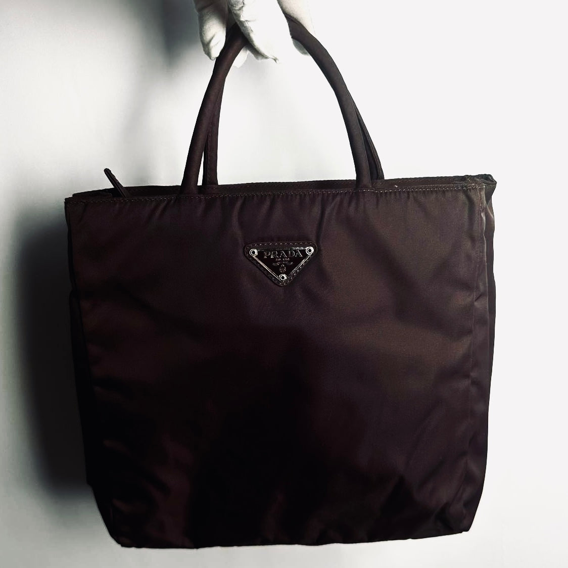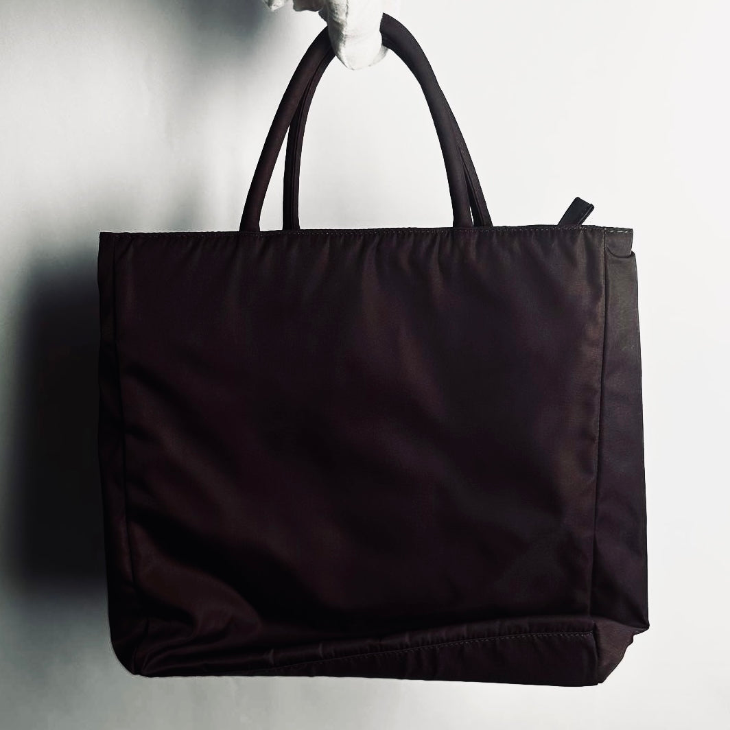Prada Dark Burgundy Brown Tessuto City Monogram Logo Nylon Structured Shopper Tote Bag