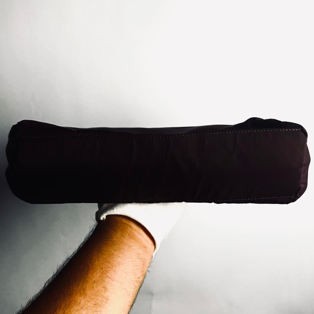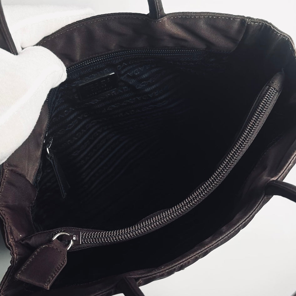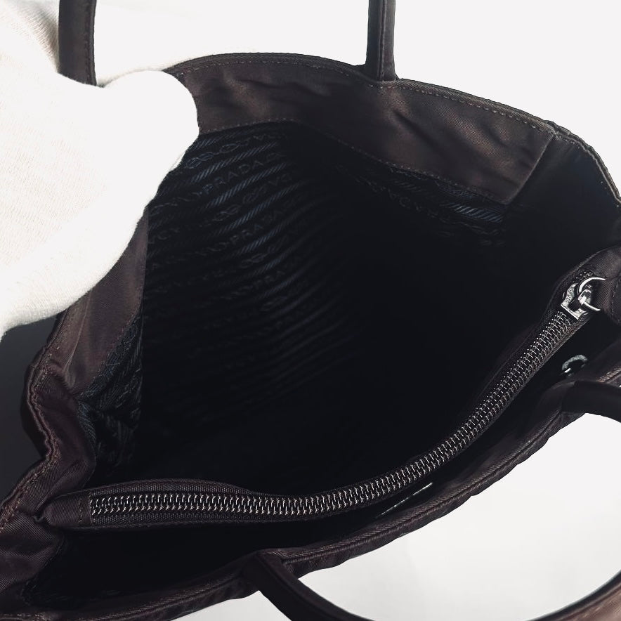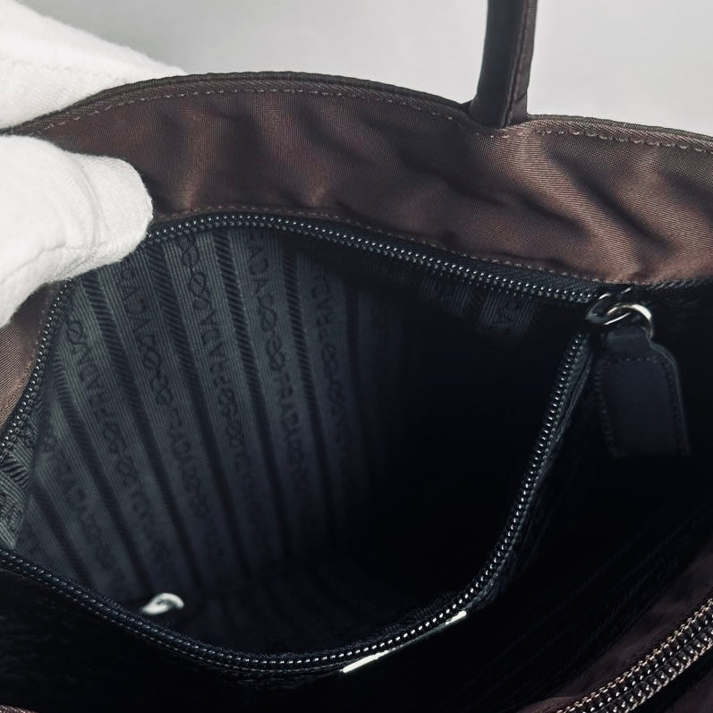 Prada Dark Burgundy Brown Tessuto City Monogram Logo Nylon Structured Shopper Tote Bag