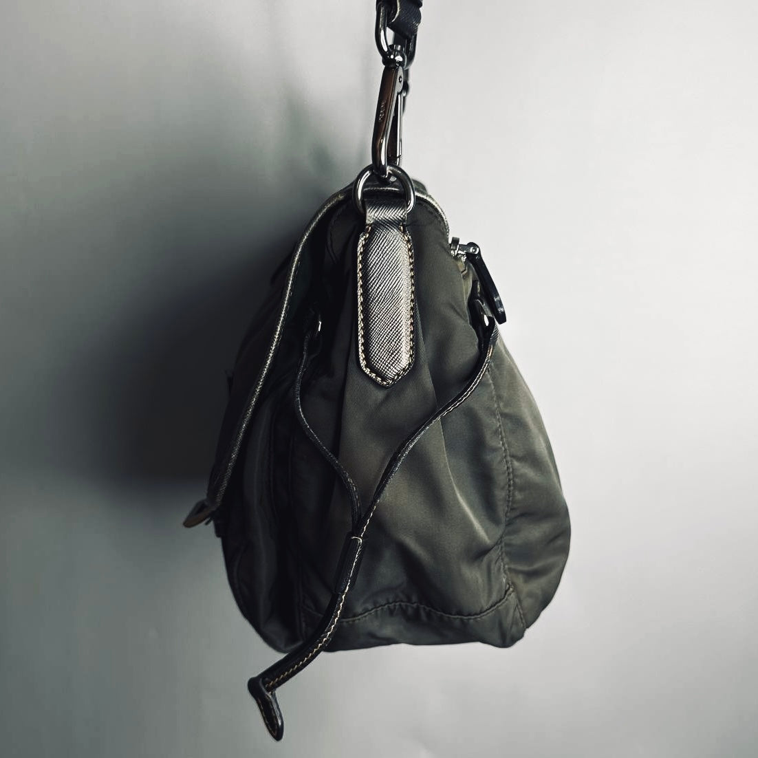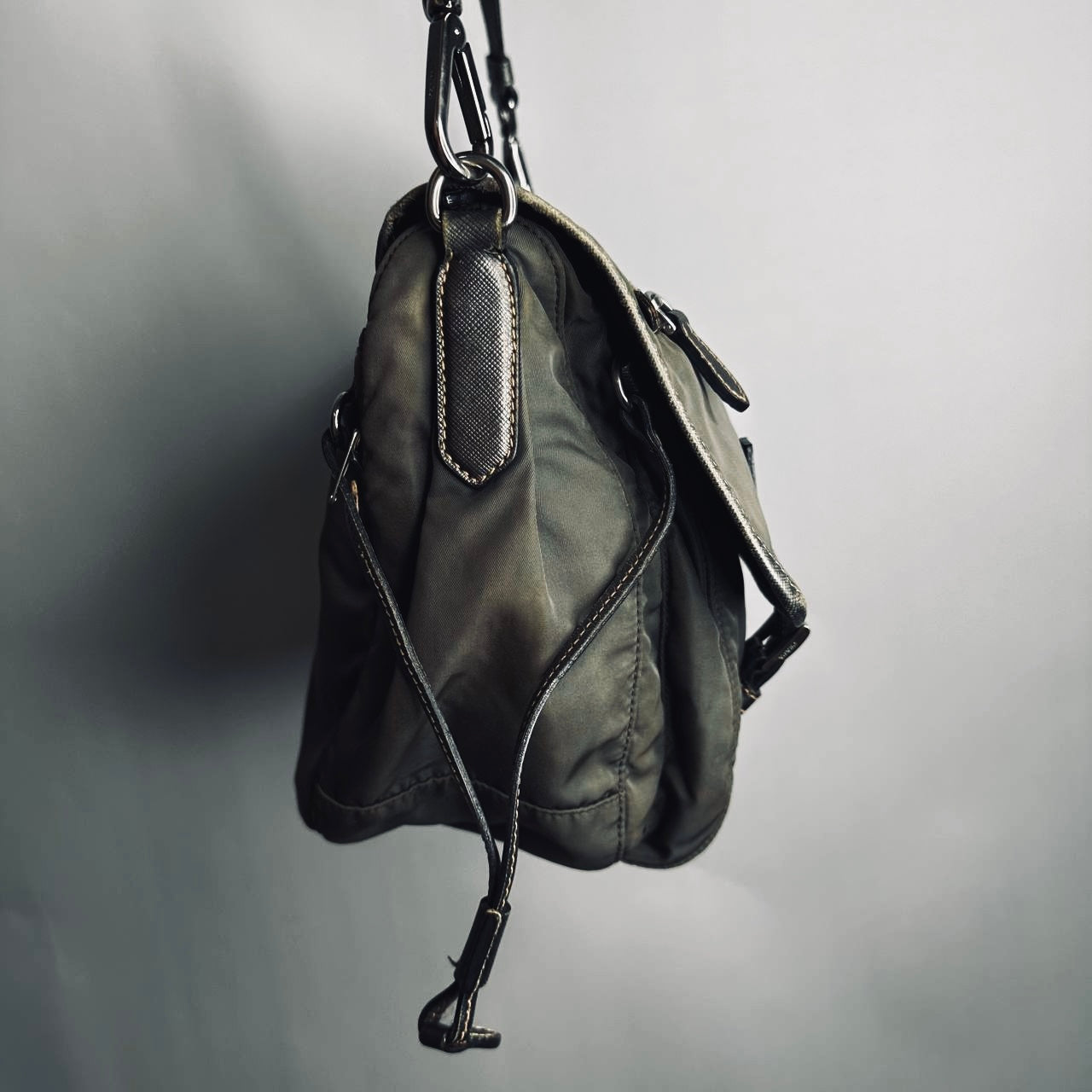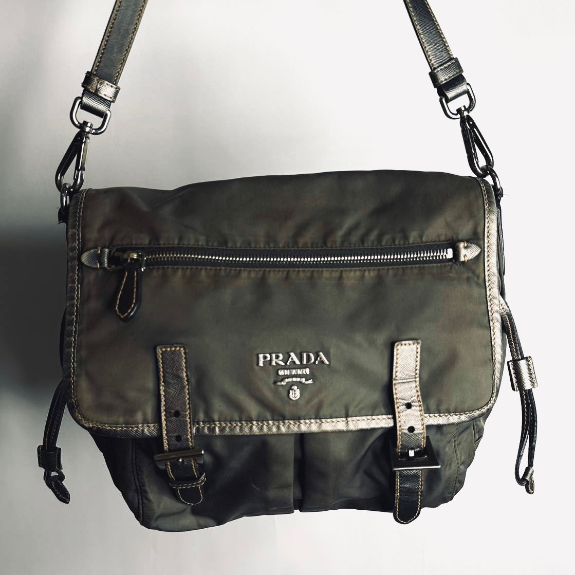 Prada Dark Khaki Tessuto Monogram Logo Nylon & Leather Flap Shoulder Sling Messenger Bag