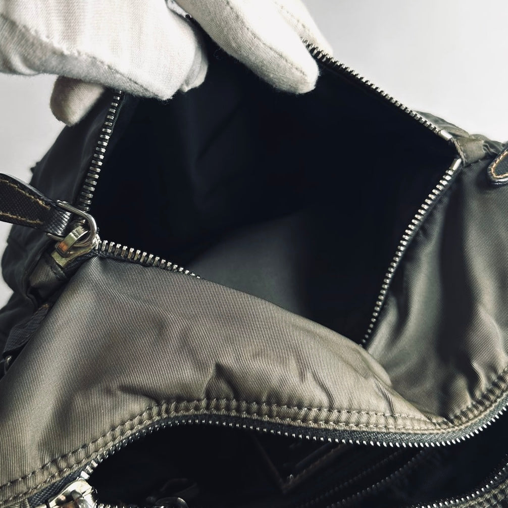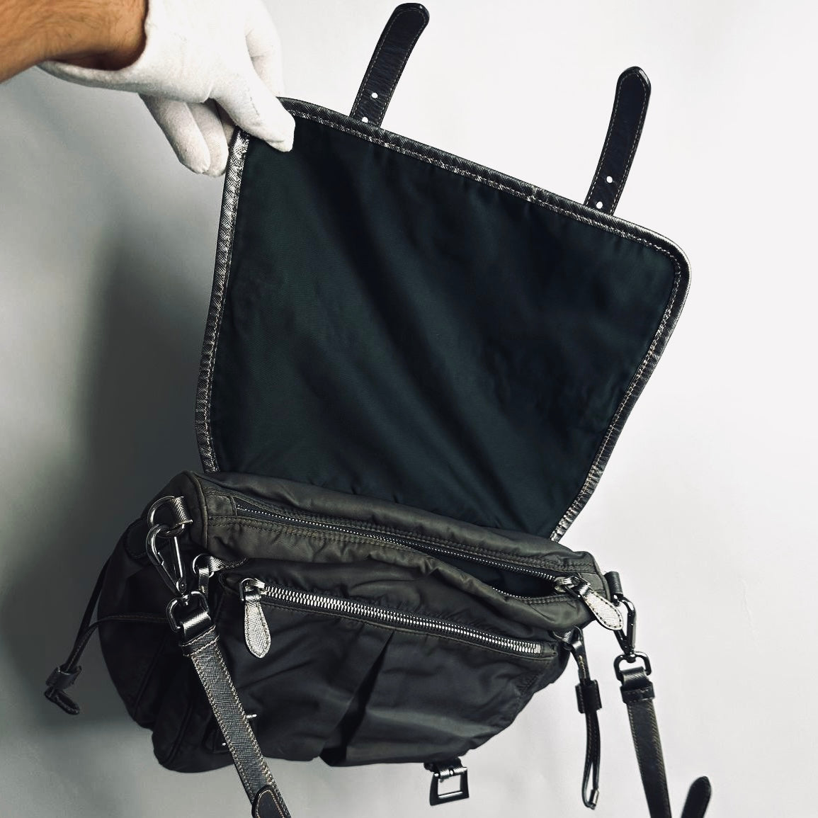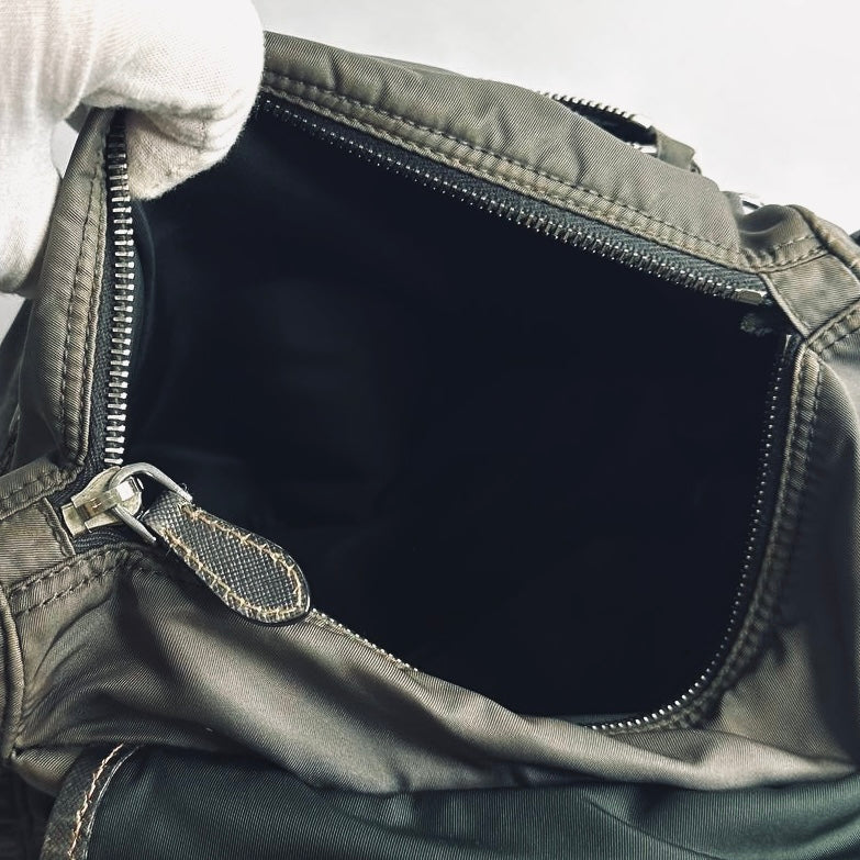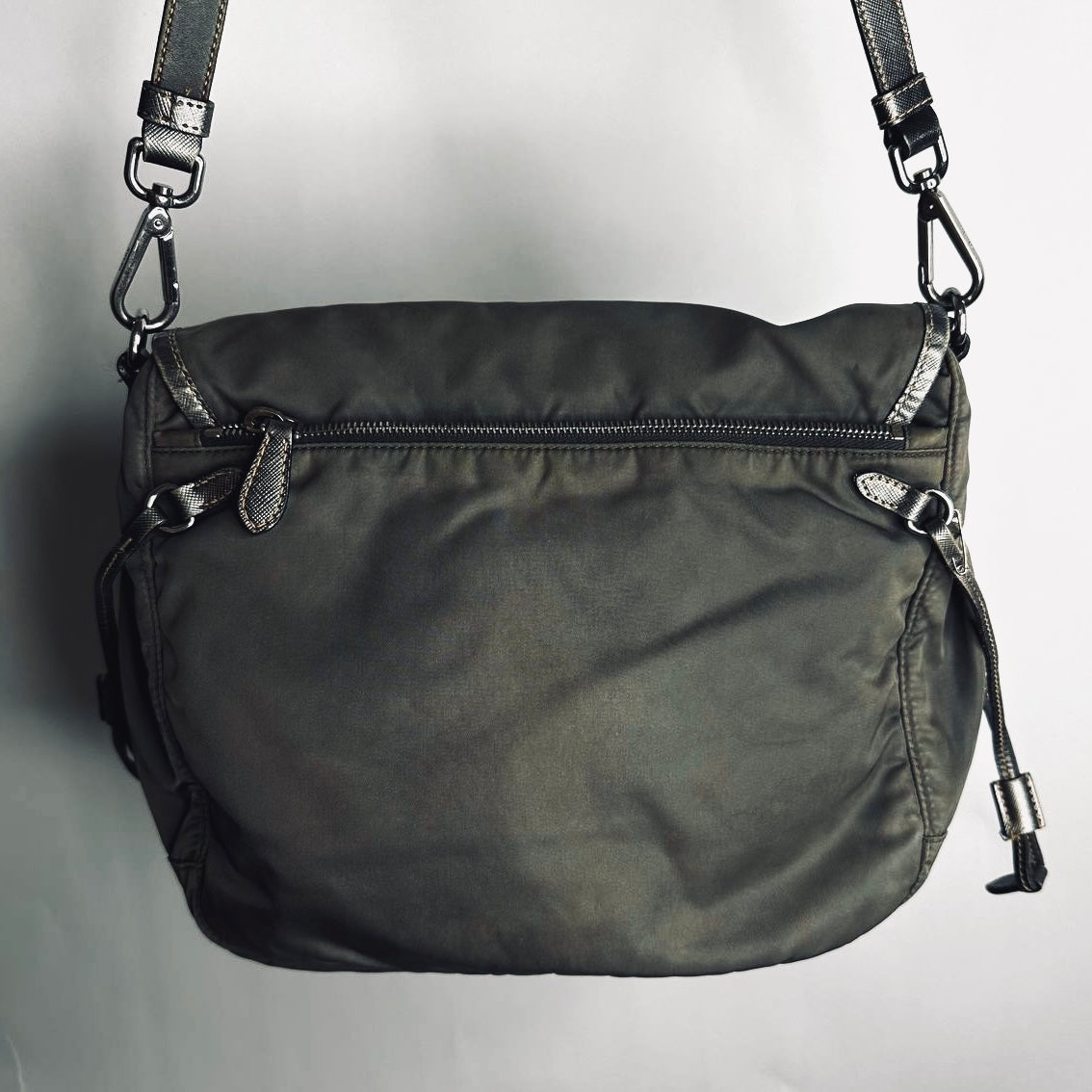 Prada Dark Khaki Tessuto Monogram Logo Nylon & Leather Flap Shoulder Sling Messenger Bag