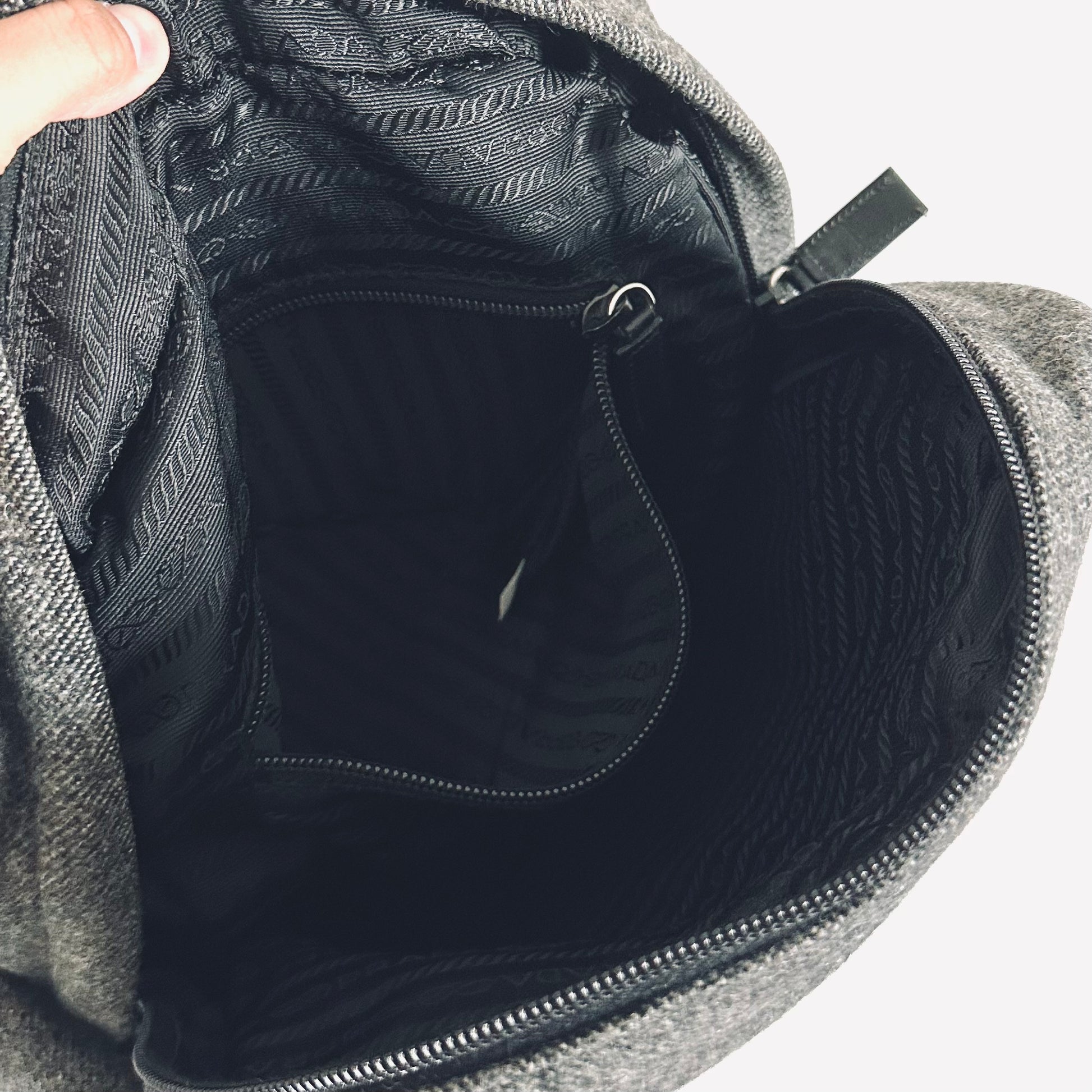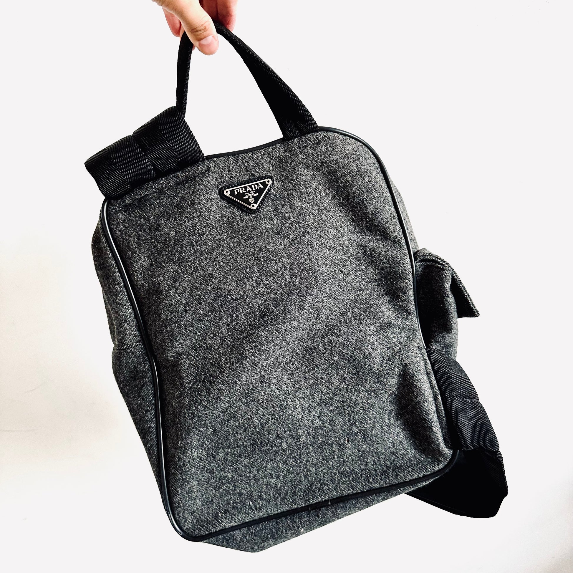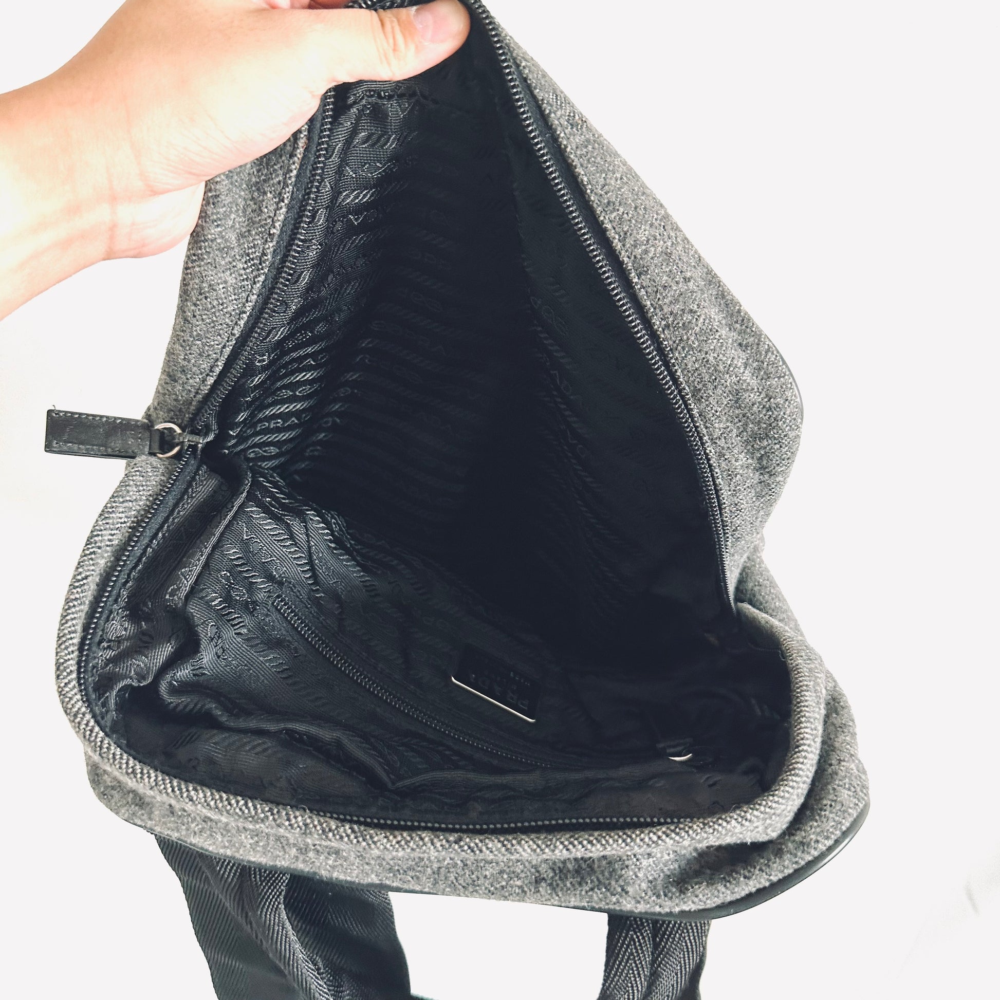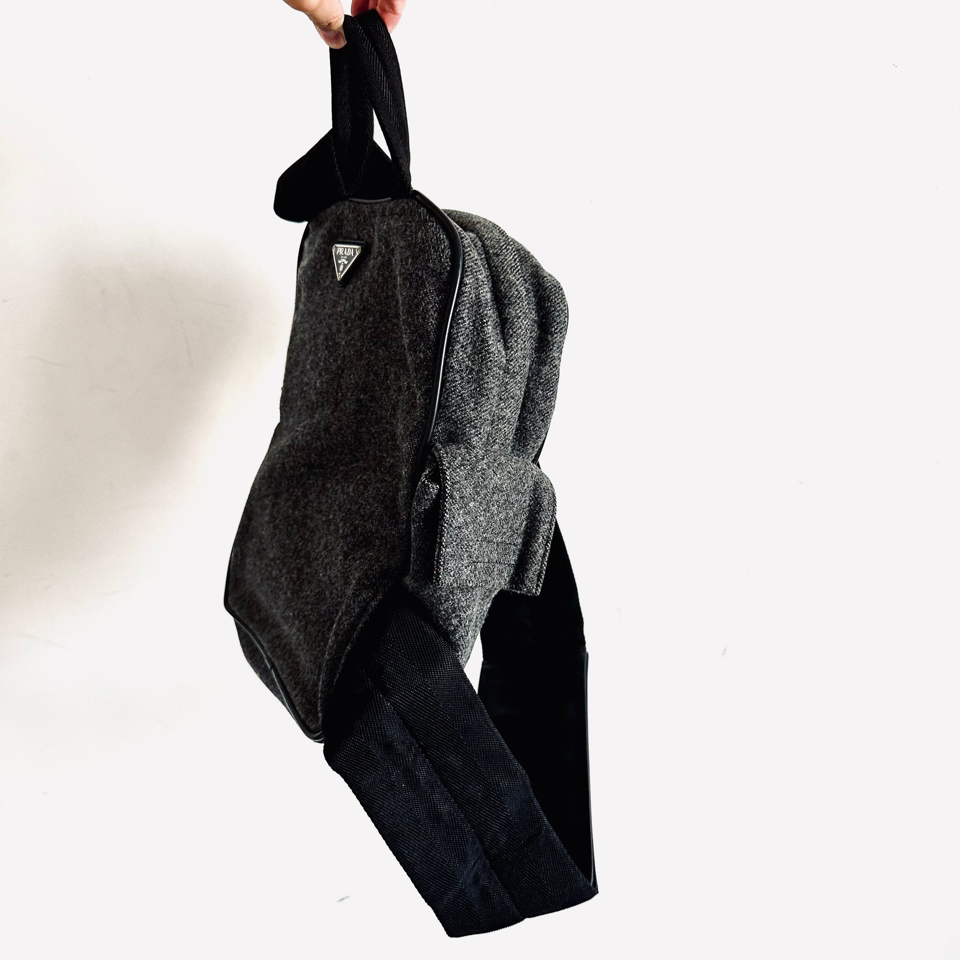 Prada Grey Wool Monogram Logo Backpack Shoulder Sling Bag