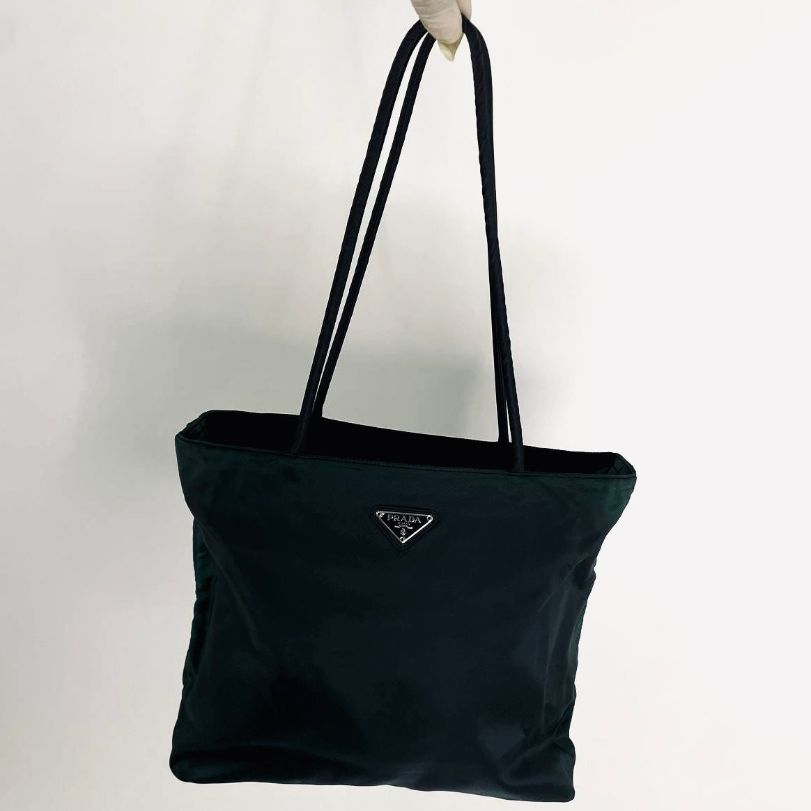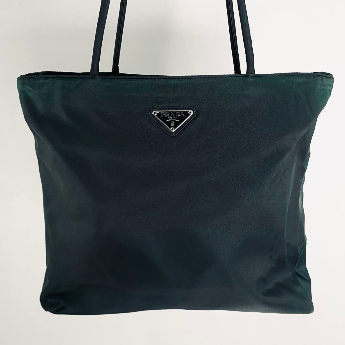 Prada Jade Green Classic Monogram Logo Structured Zip Shoulder Shopper Tote Bag