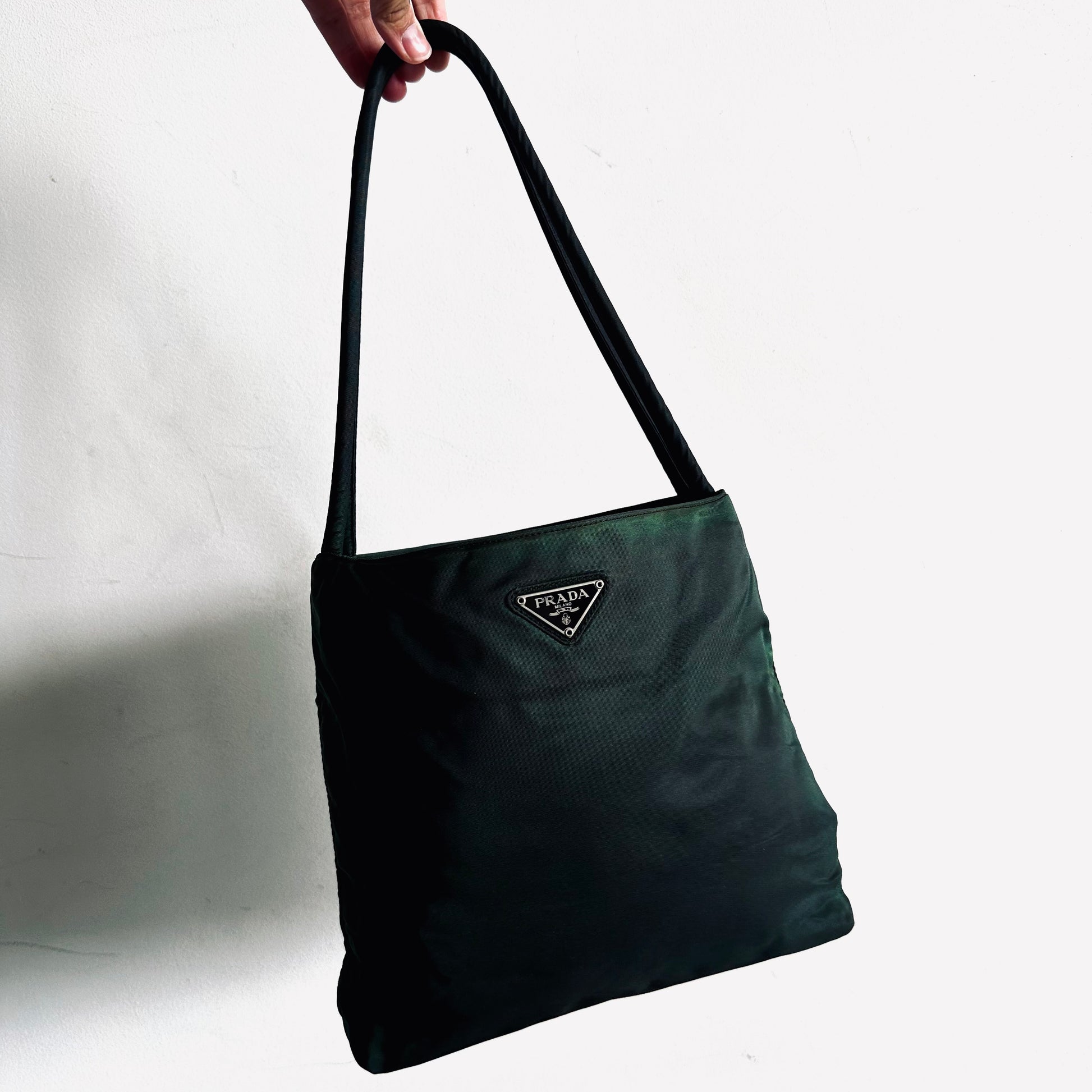 Prada Jade Malachite Tessuto City Classic Logo Structured Shoulder Shopper Tote Bag