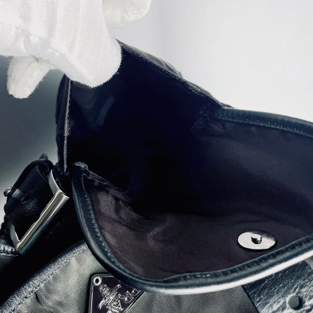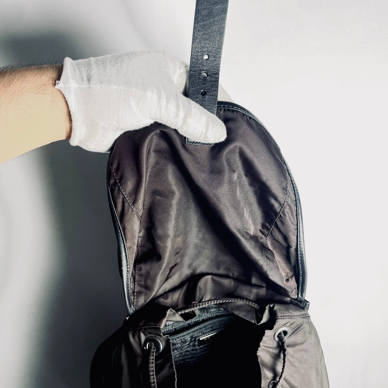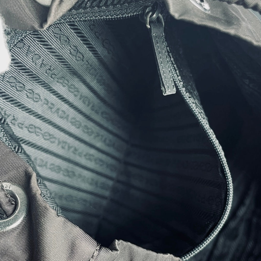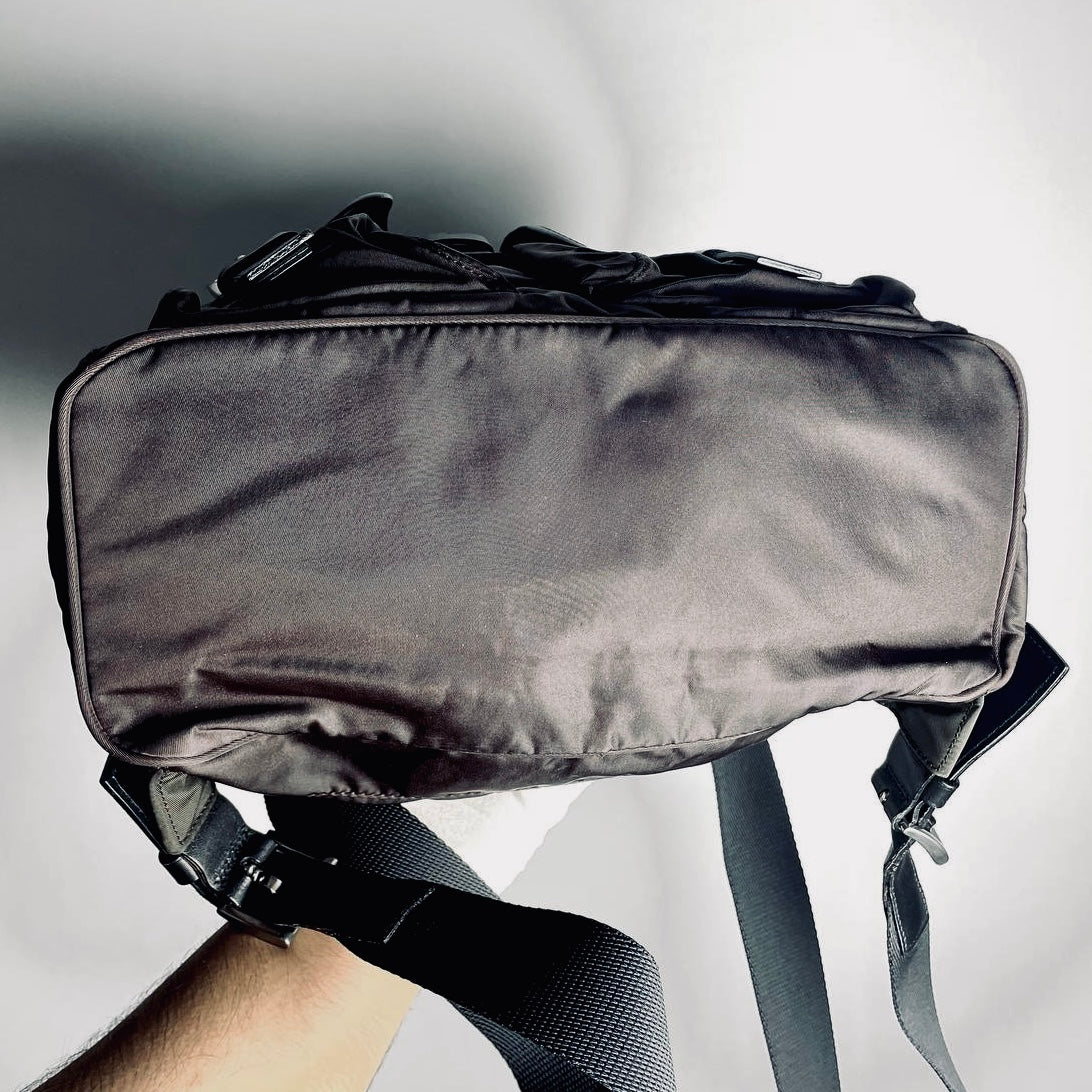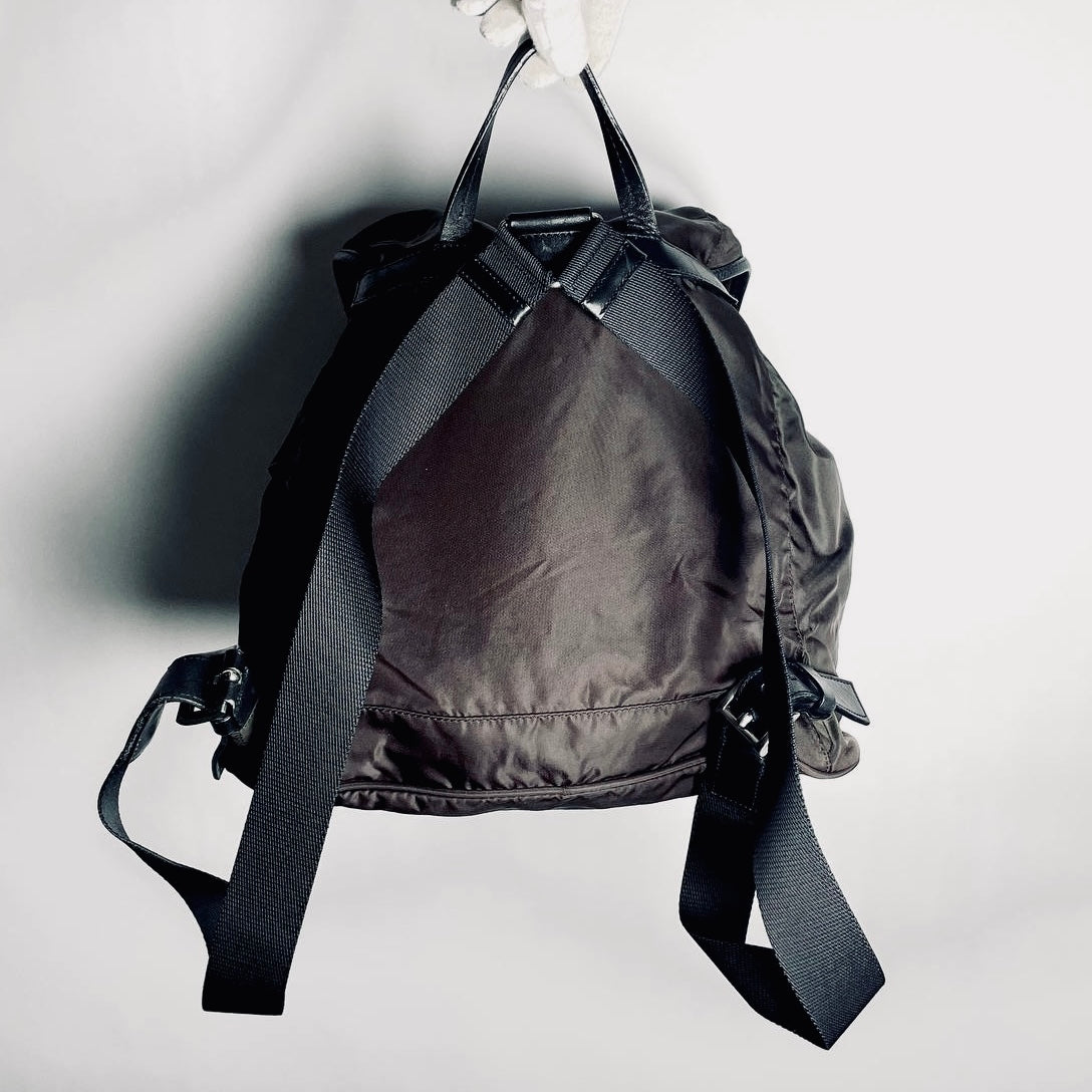 Prada Khaki Brown Tessuto Classic Logo Nylon & Leather Backpack Flap Drawstring Bag