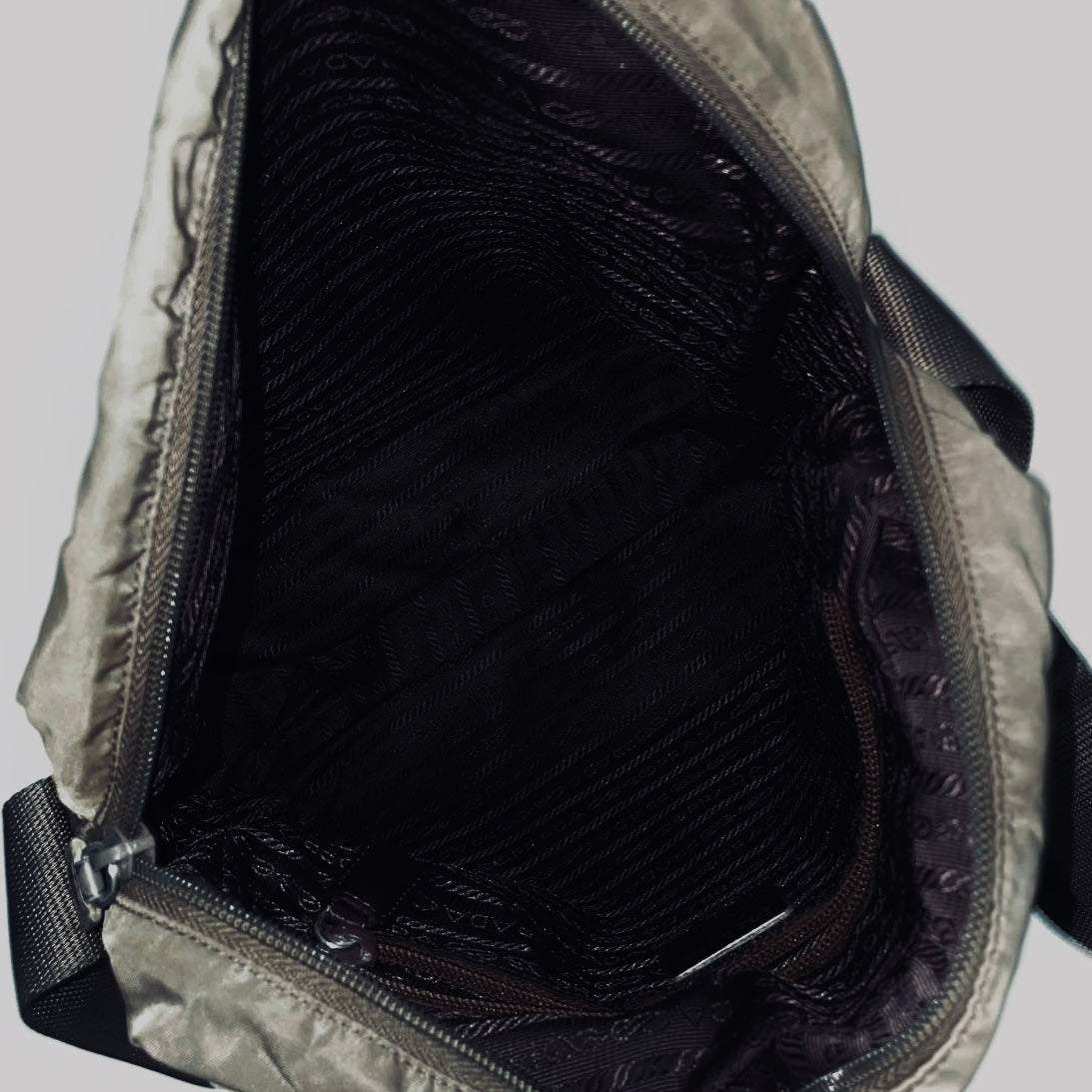 Prada Khaki Tessuto Logo Classic Nylon & Leather Camera Zip Shoulder Sling Bag