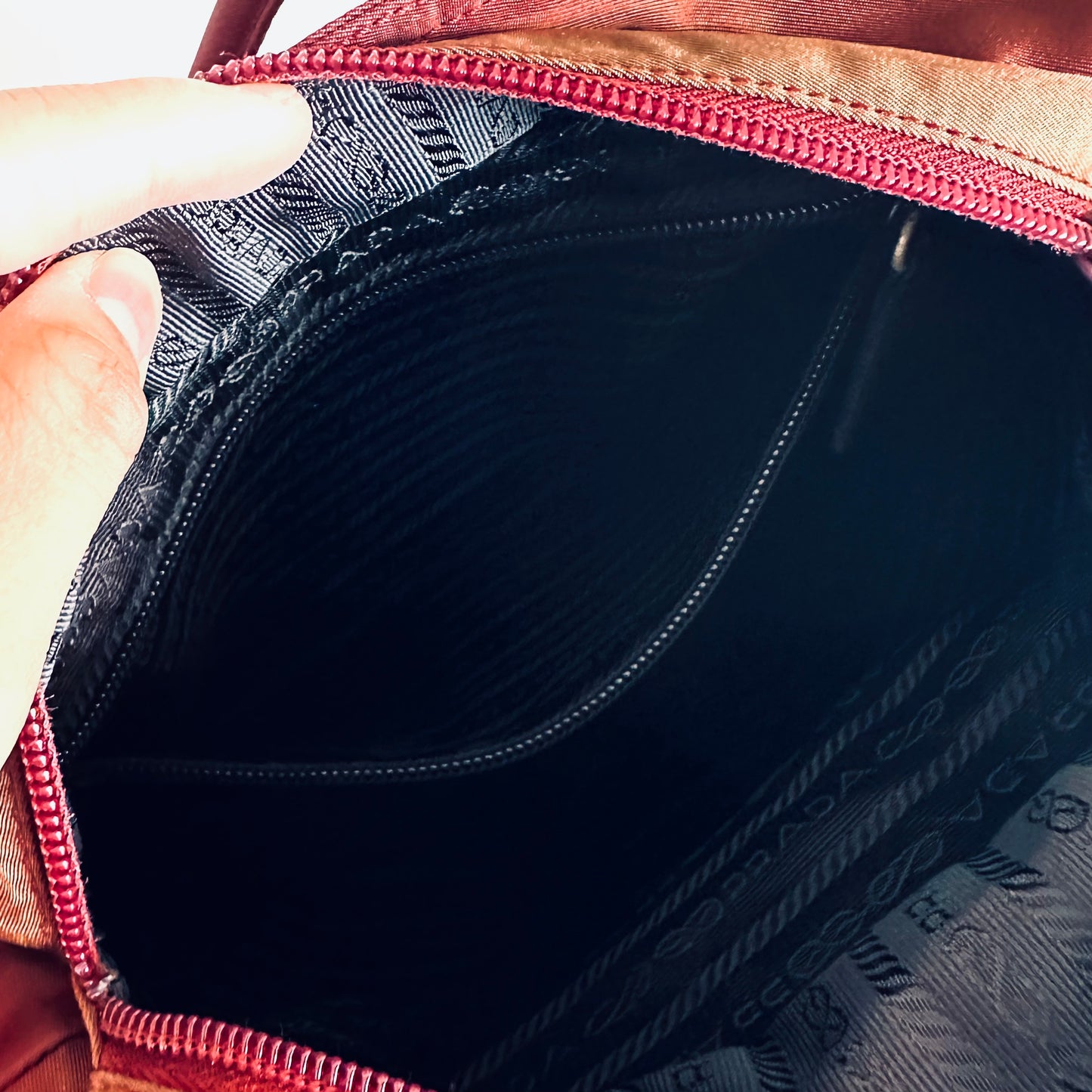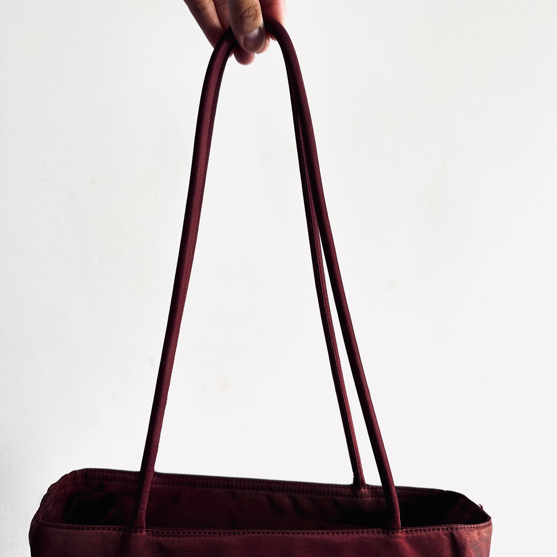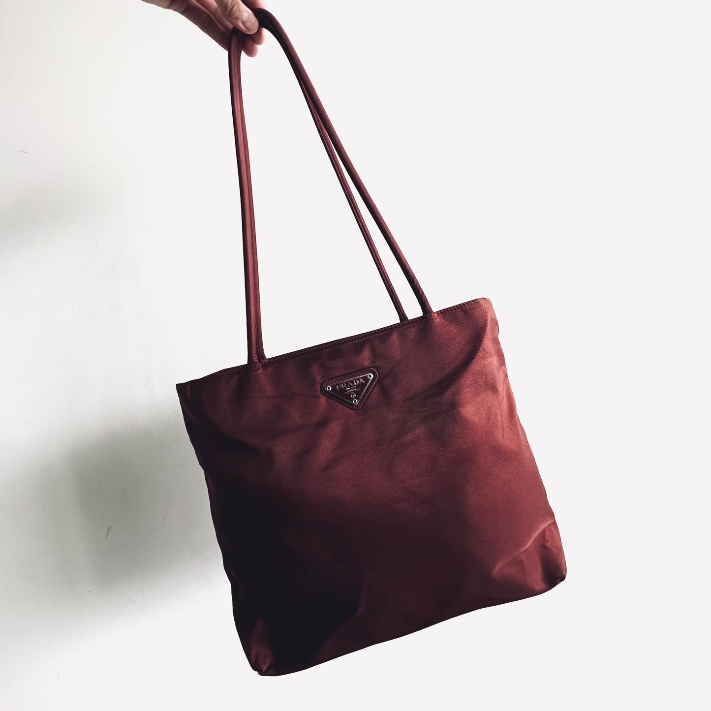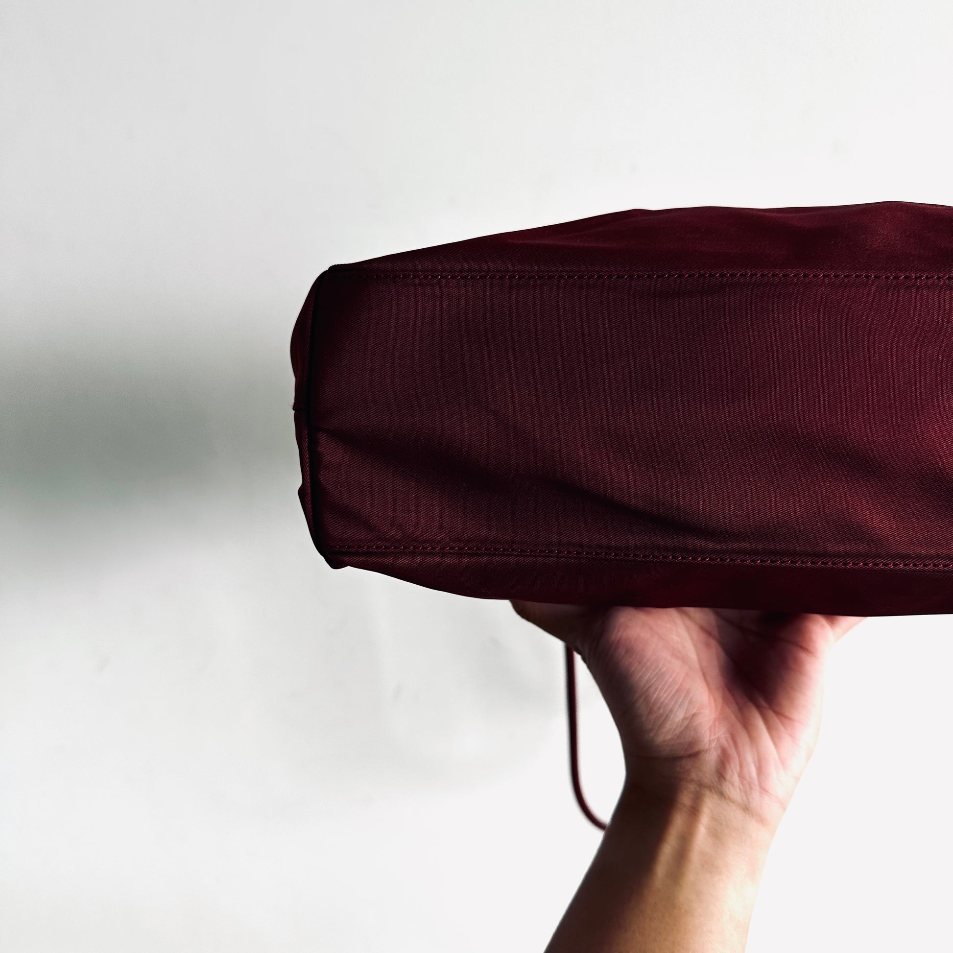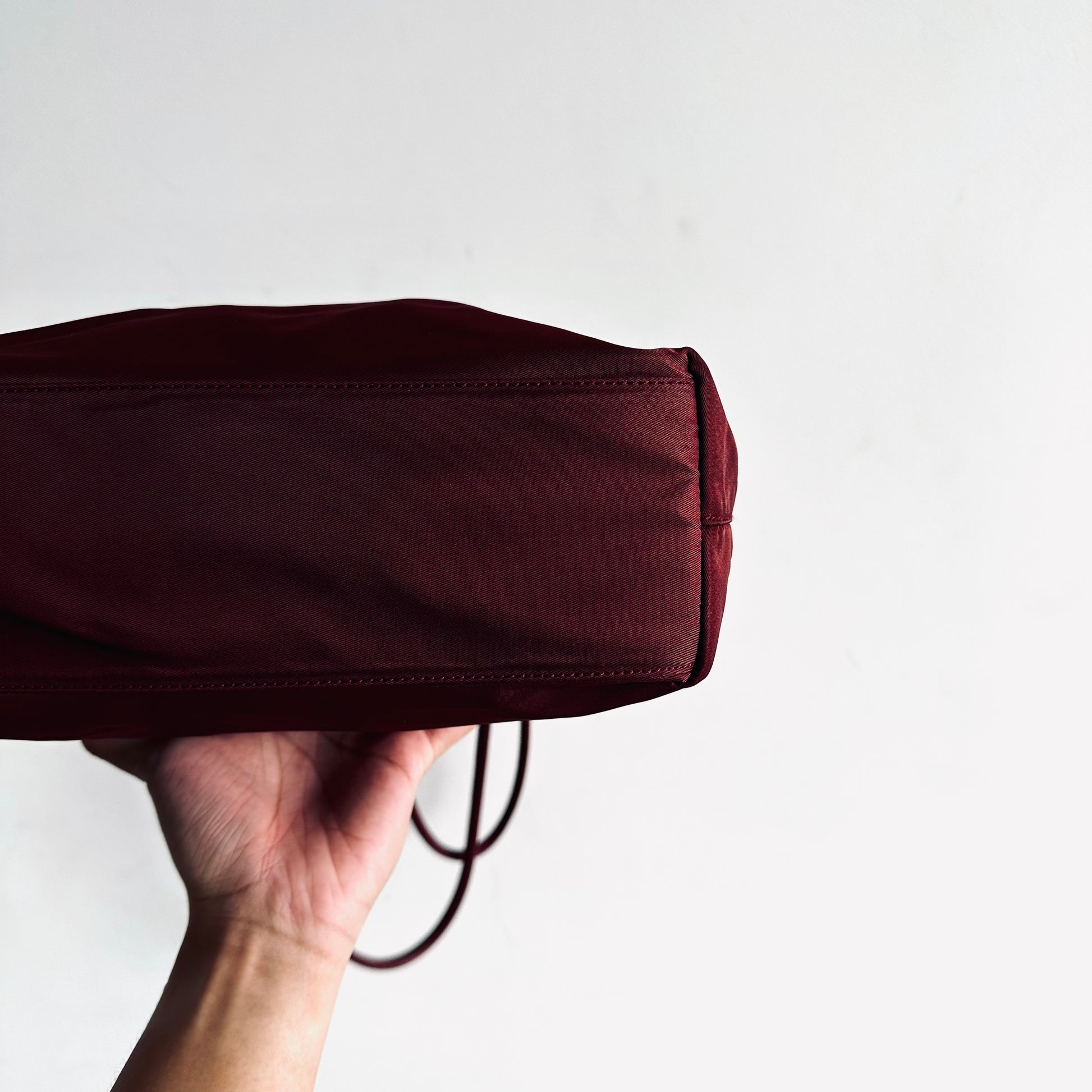 Prada Maroon Burgundy Red Classic Logo Nylon Shopper Zip Shoulder Tote Bag