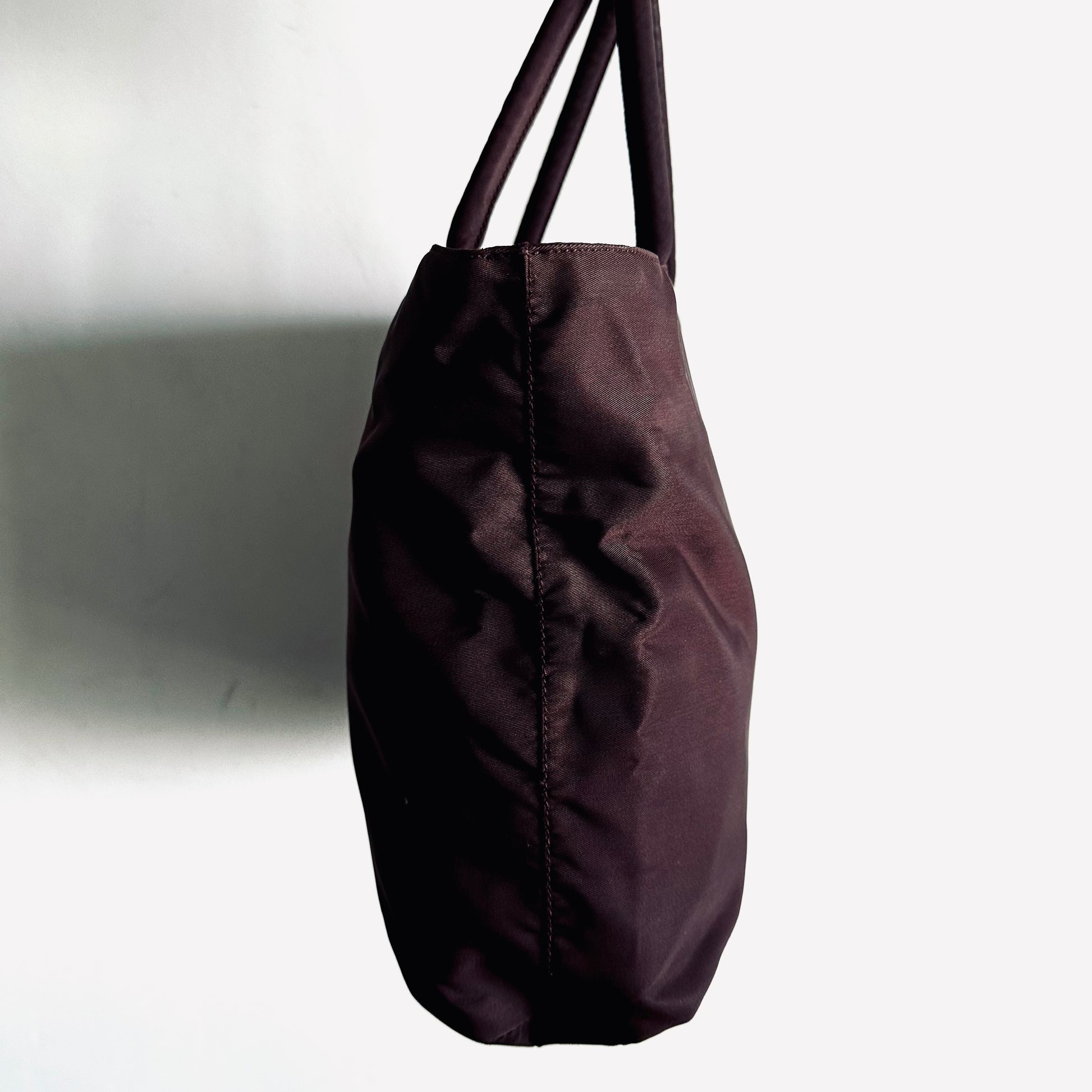 Prada Maroon Burgundy Red Classic Logo Nylon Shopper Zip Tote Bag