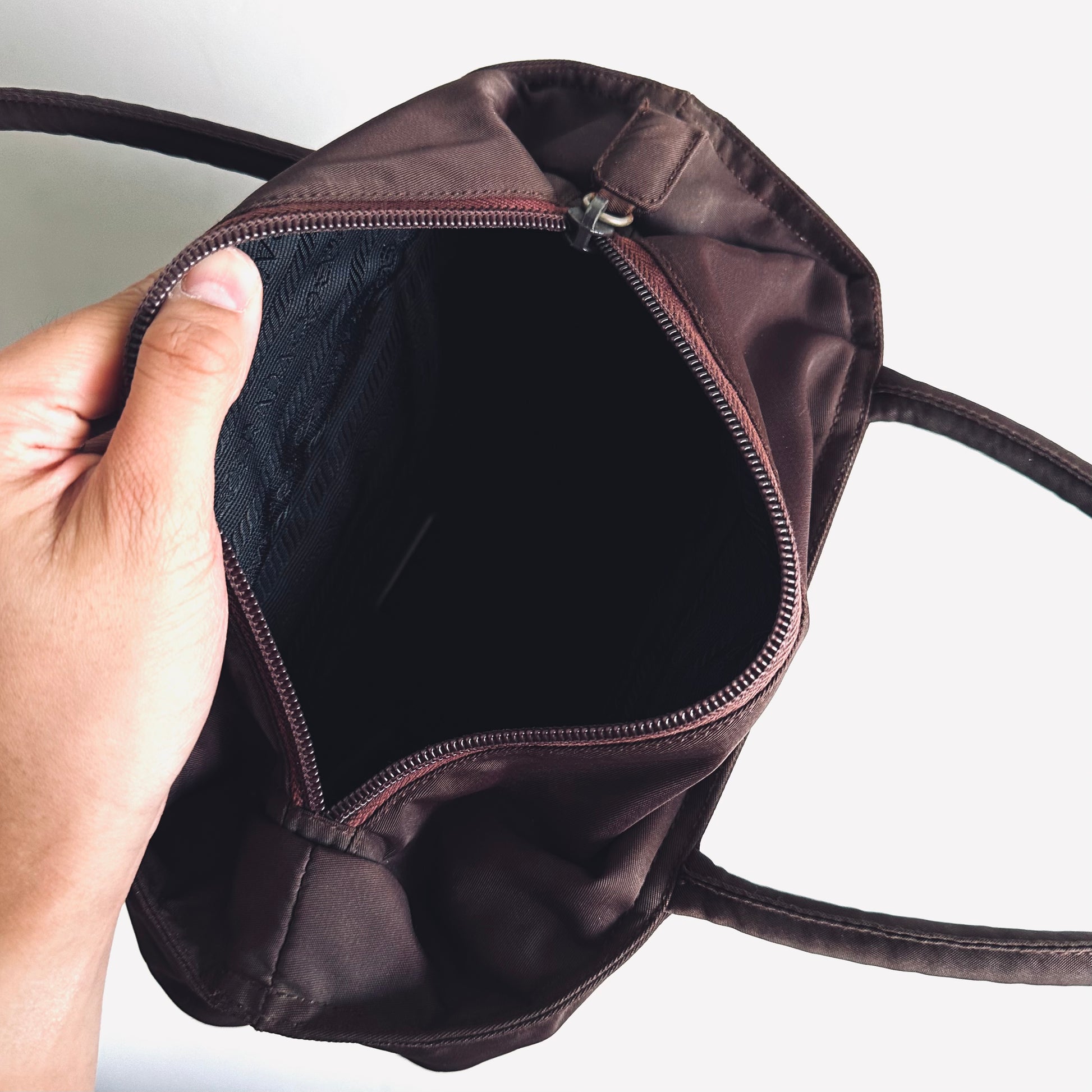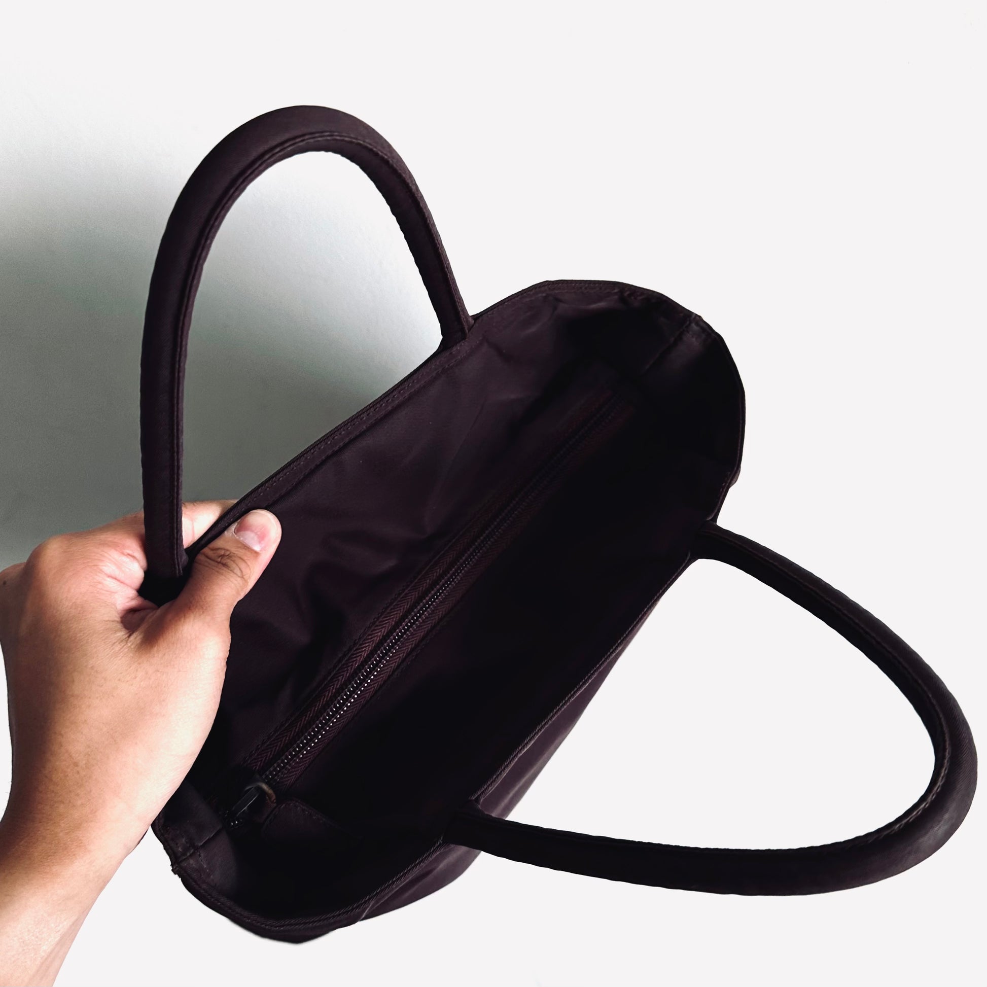 Preloved 9.4/10. This has a zip closure, central compartment and zip pocket. This measures 26x23x8cm.