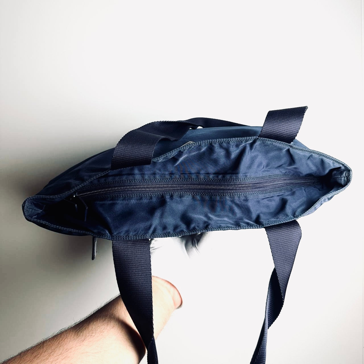 Prada Navy Blue Tessuto Monogram Logo Shopper Nylon Shoulder Tote Bag