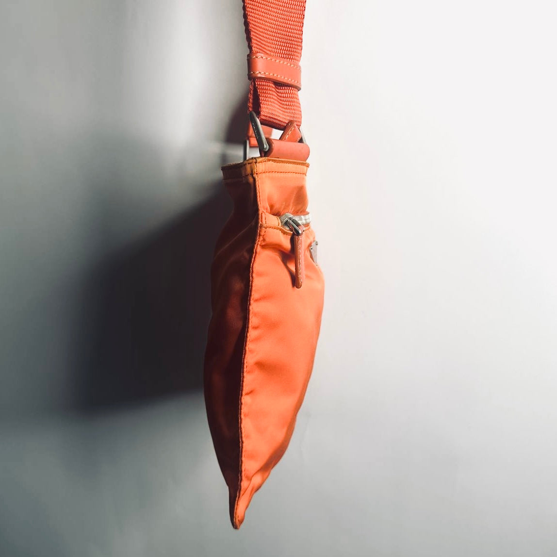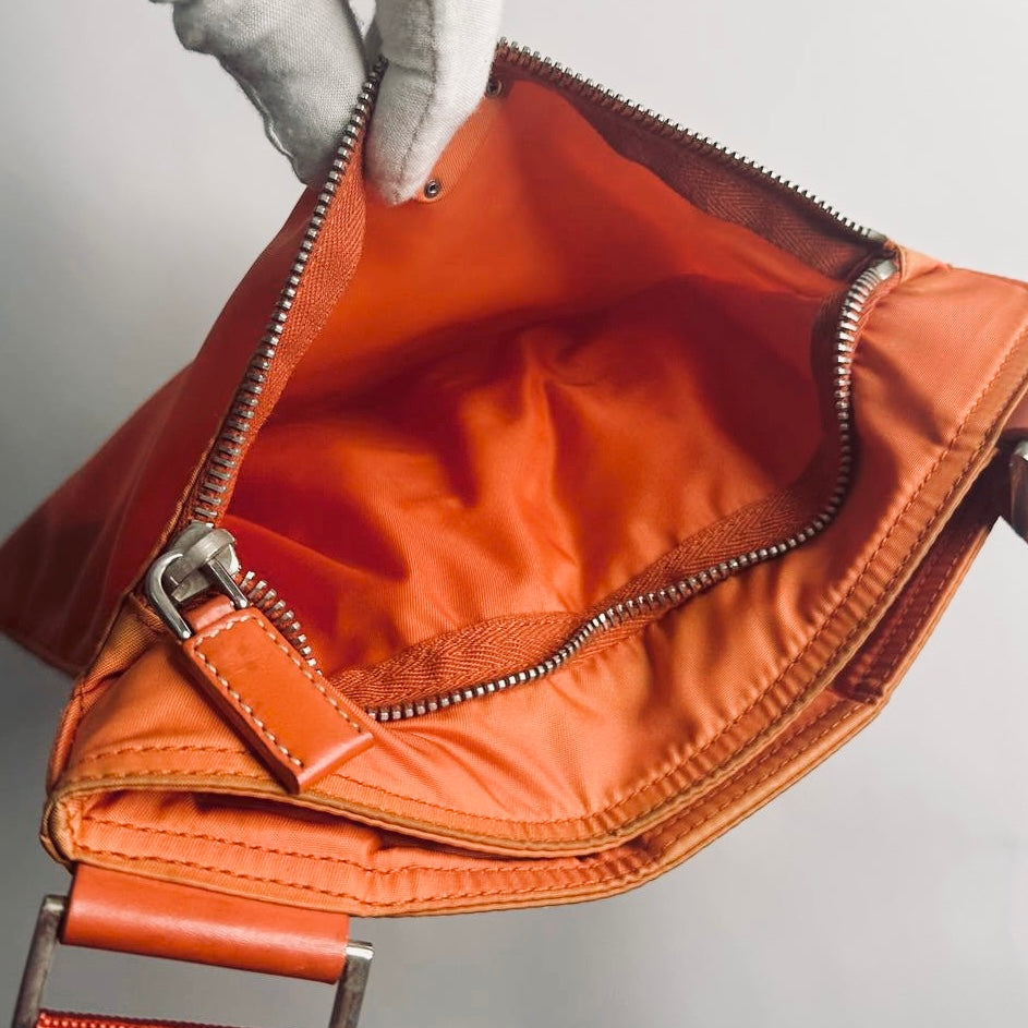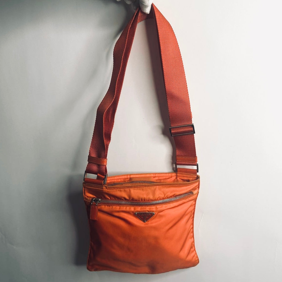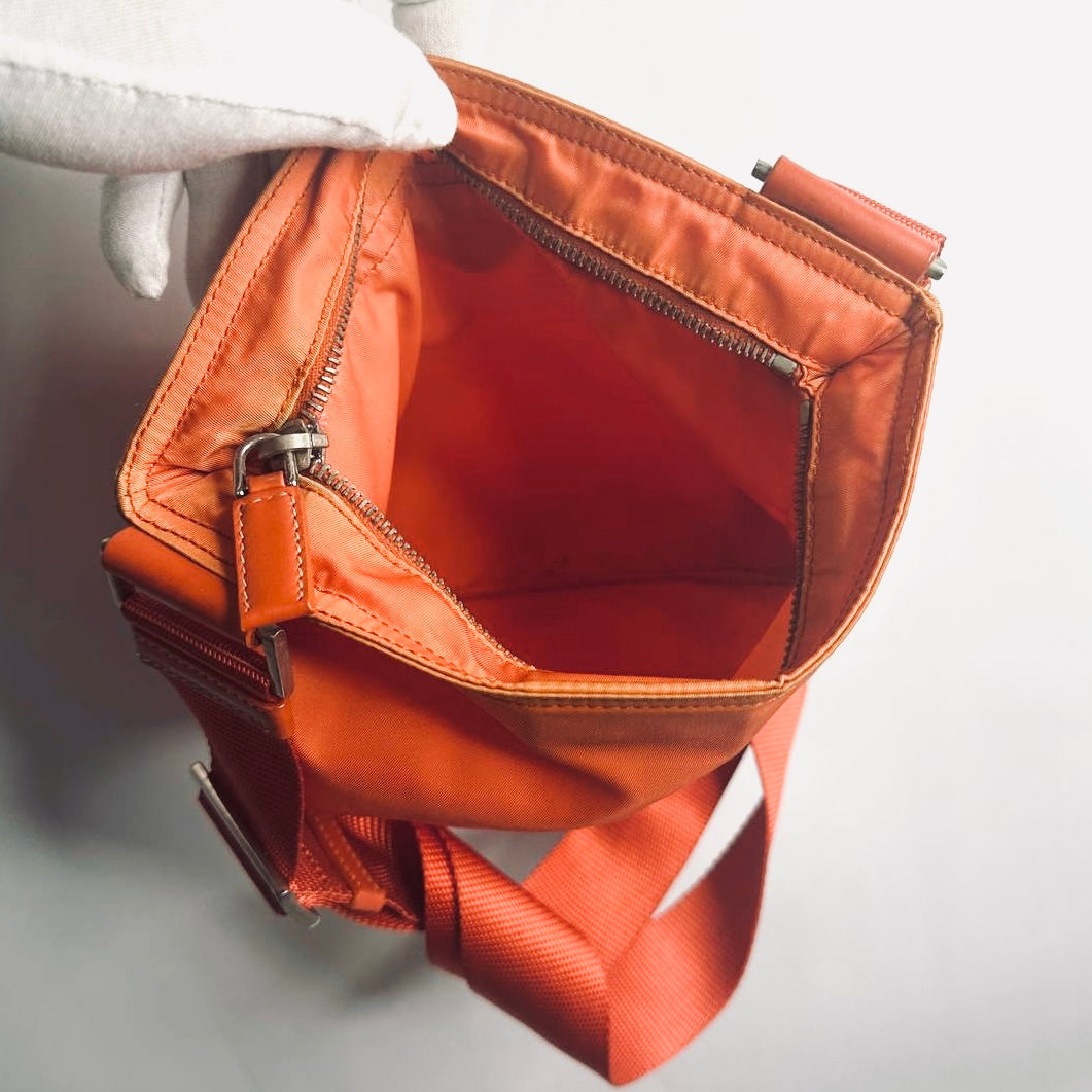 Prada Orange Tessuto Nylon Classic Monogram Logo Small Zipper Shoulder Sling Bag