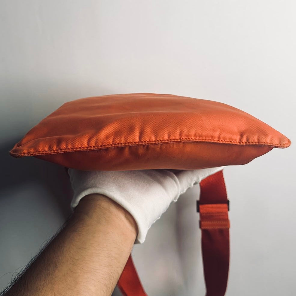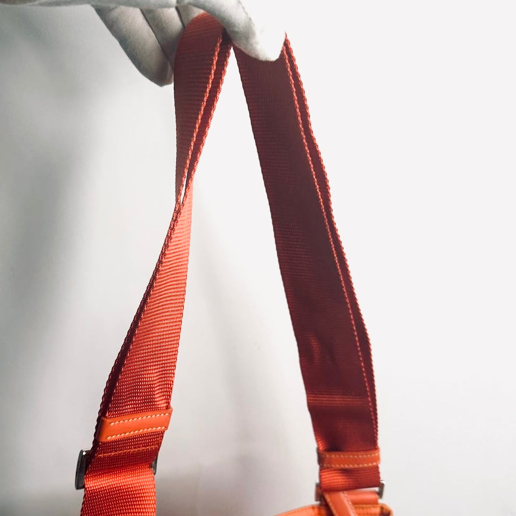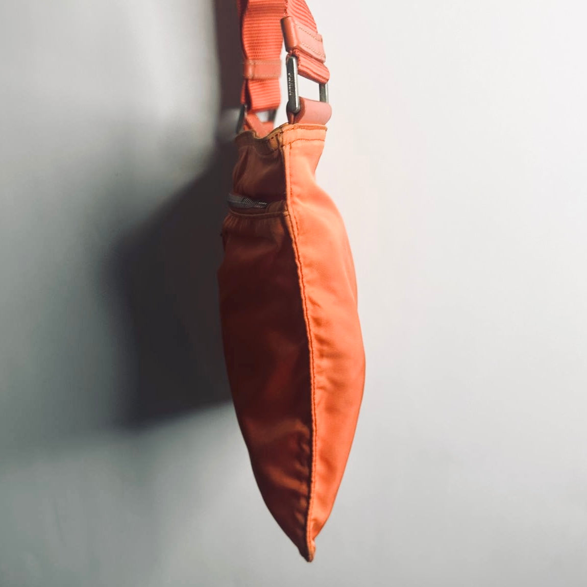 Prada Orange Tessuto Nylon Classic Monogram Logo Small Zipper Shoulder Sling Bag