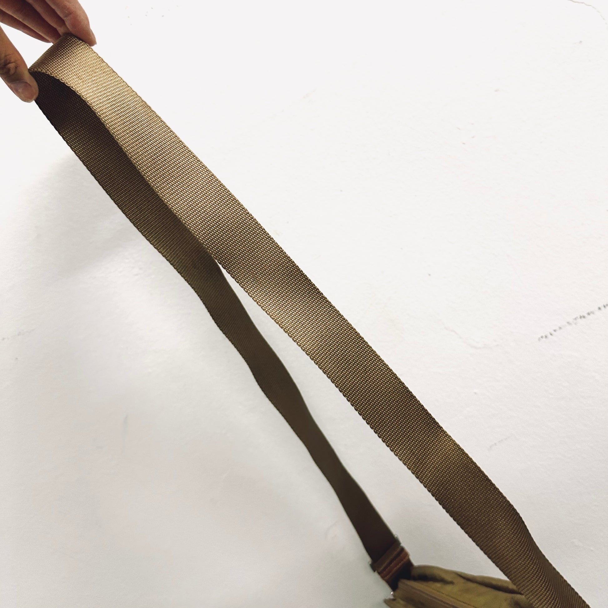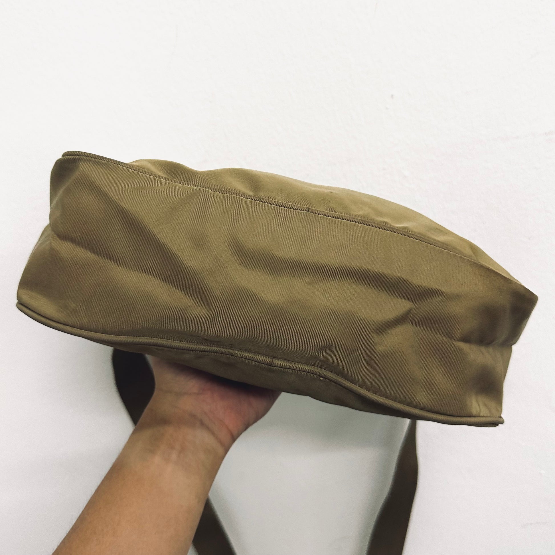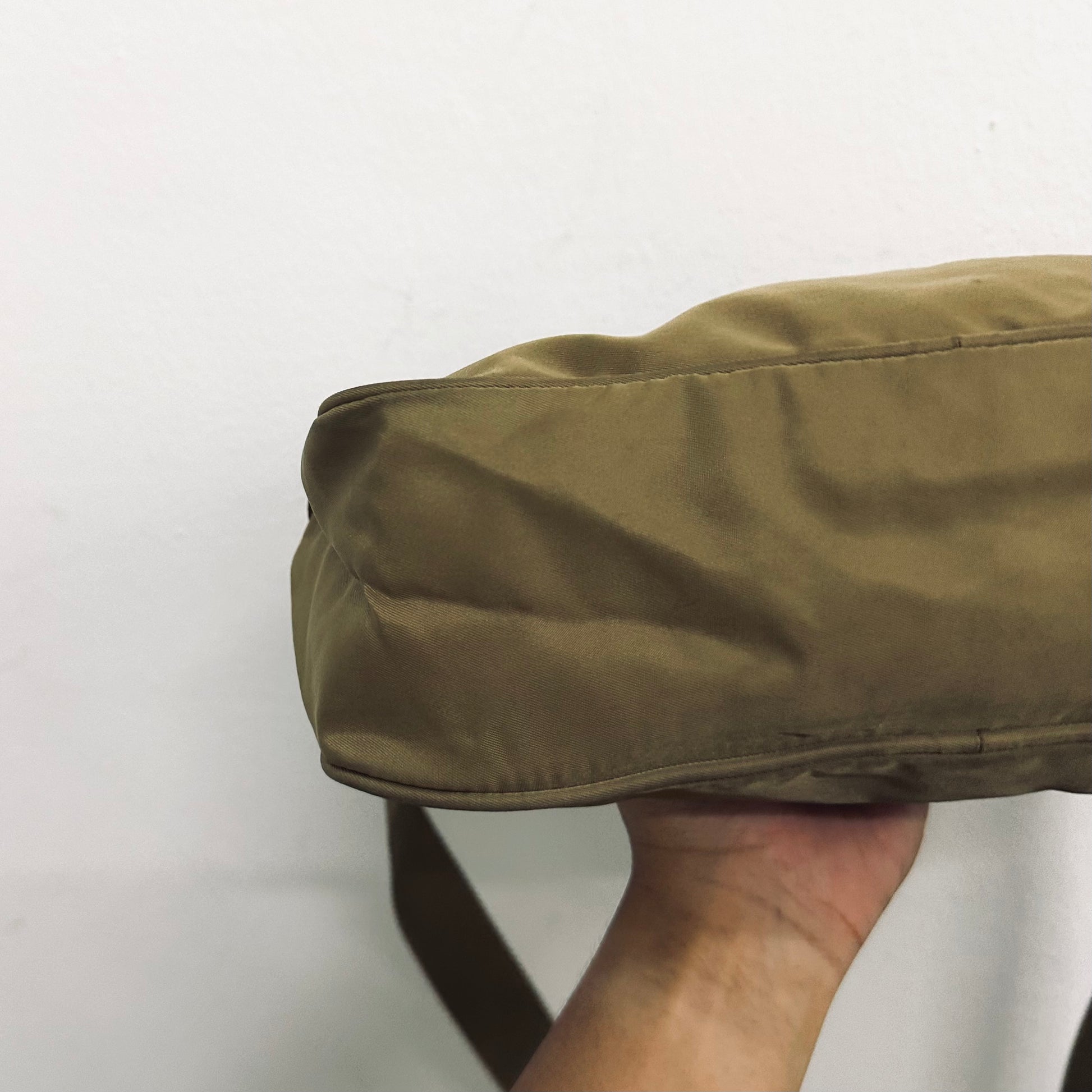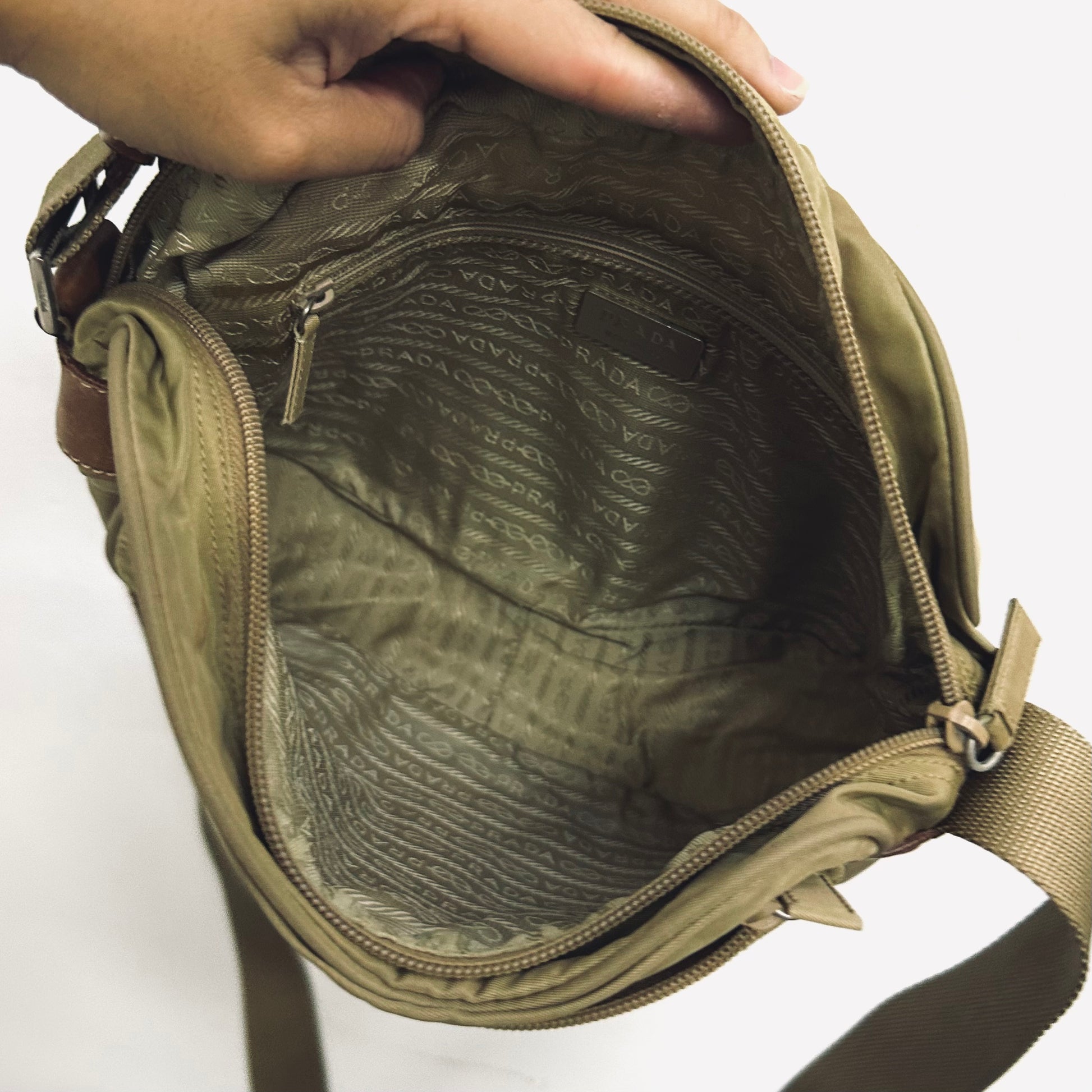 Prada Taupe Beige Vela Sport Logo Classic Nylon & Leather Zip Shoulder Sling Bag