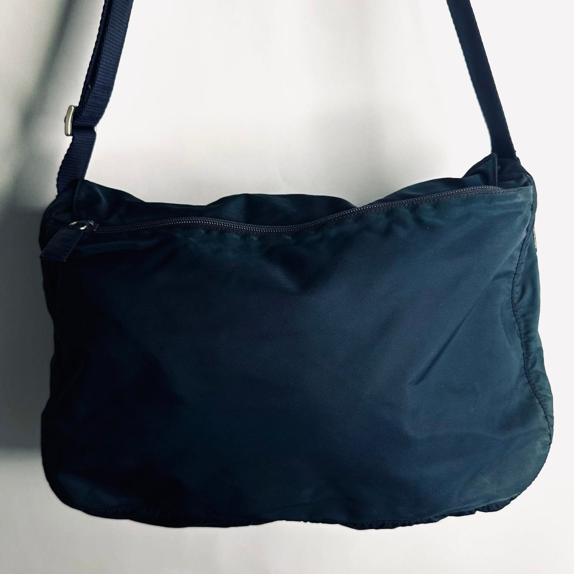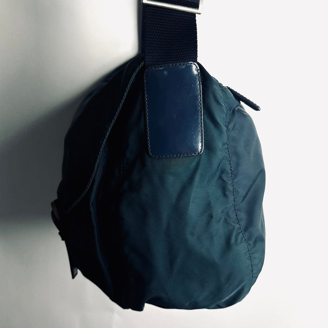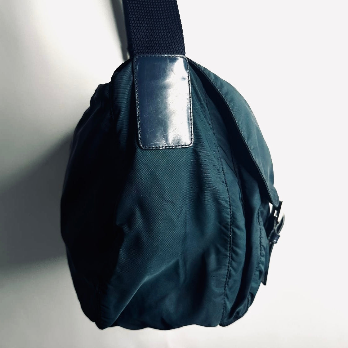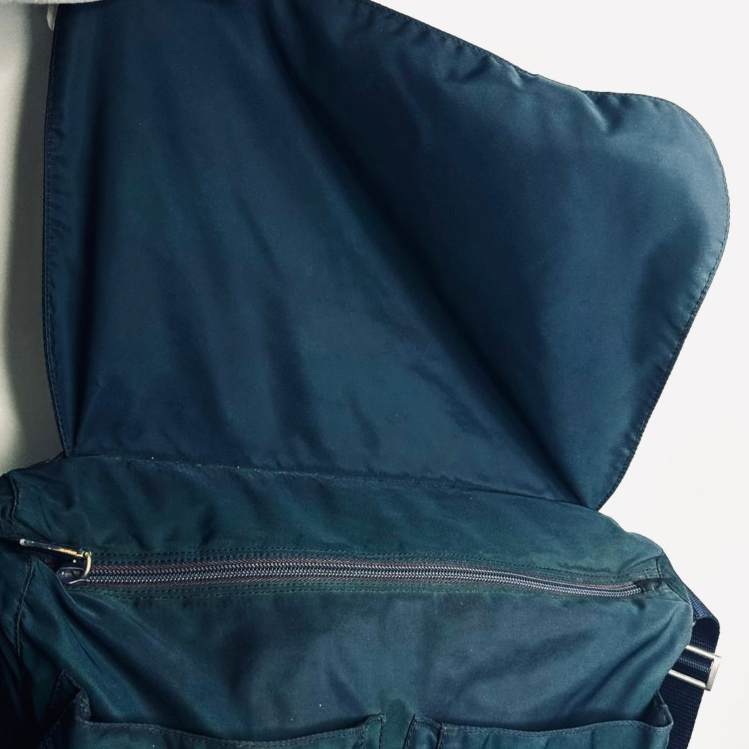 Prada Teal Blue Tessuto Monogram Logo Flap Shoulder Sling Bag