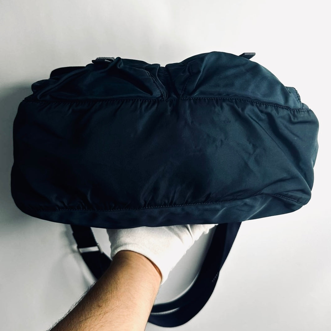 Preloved 9.4/10. This has a back zip pocket, flap buckle closures, front pockets, zip closure central compartment and interior zip pocket. This measures 33x24x12cm.