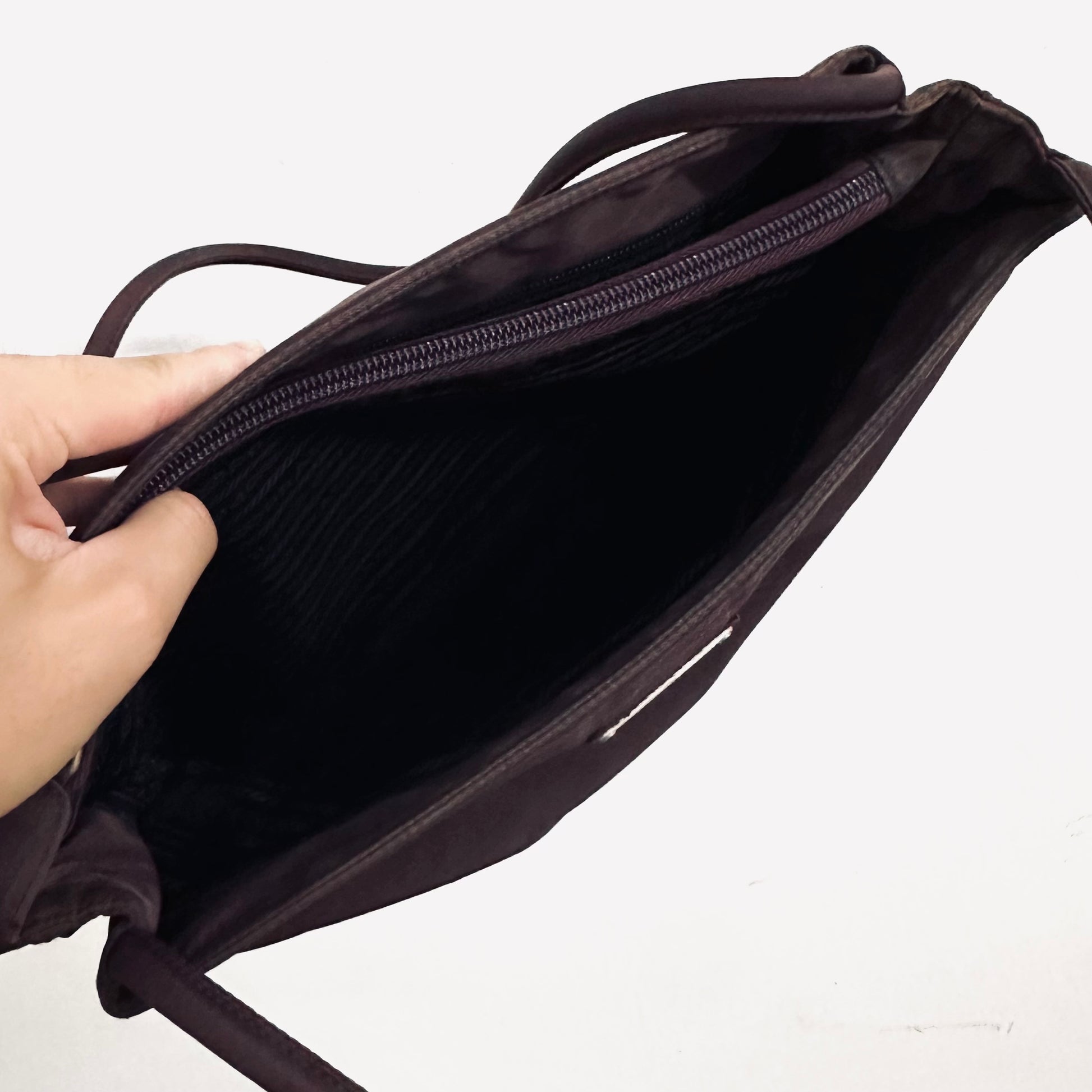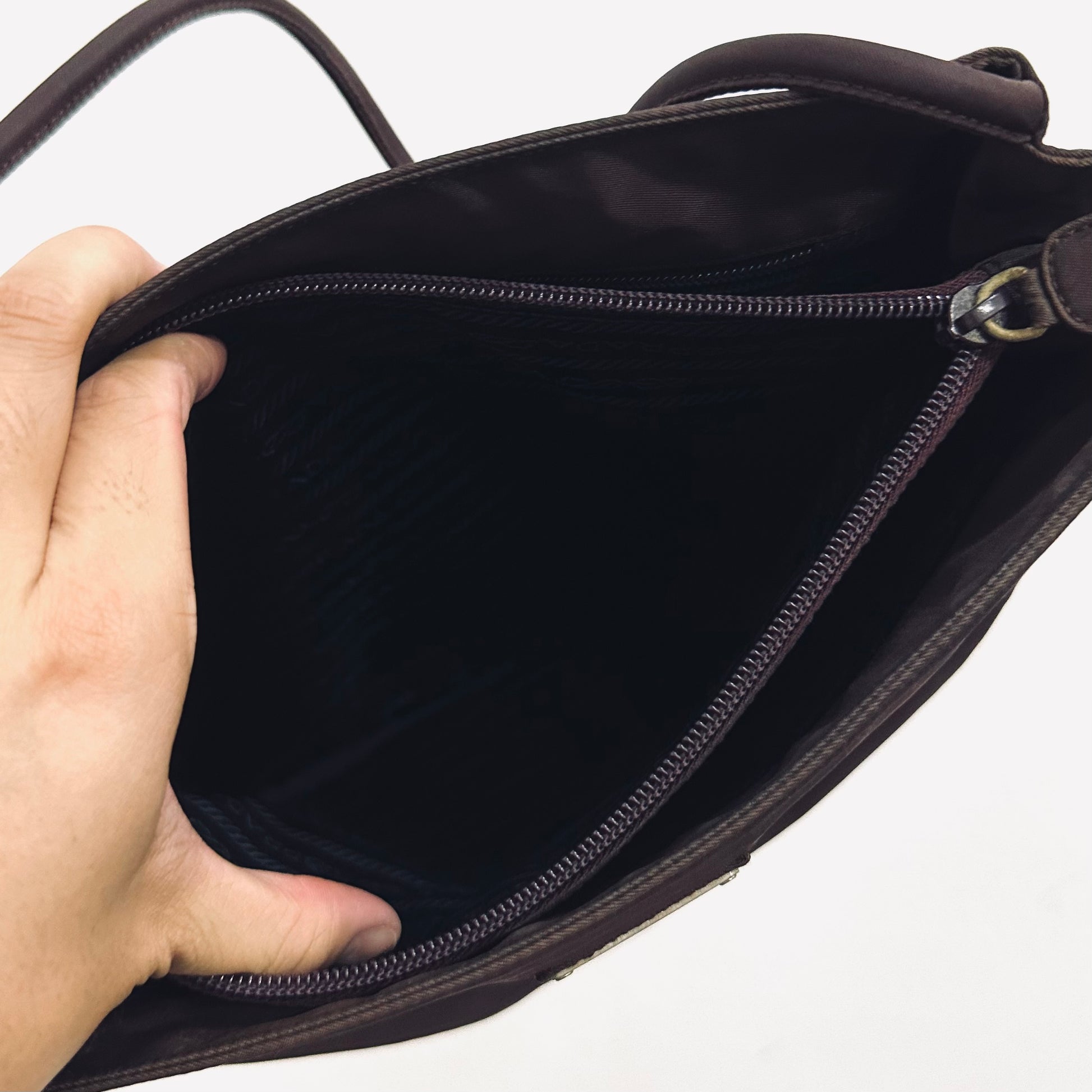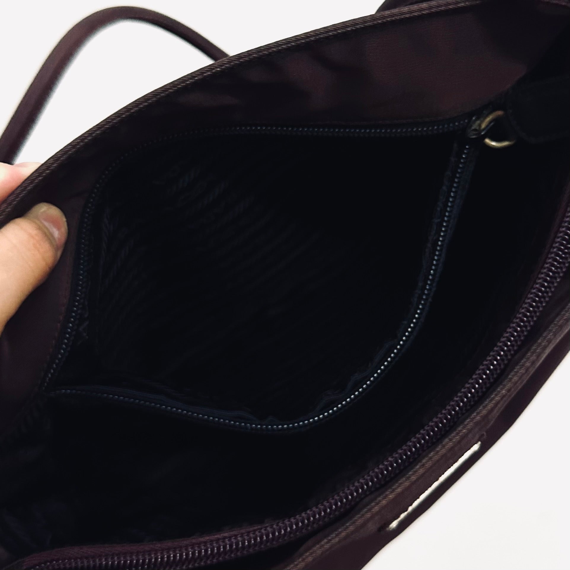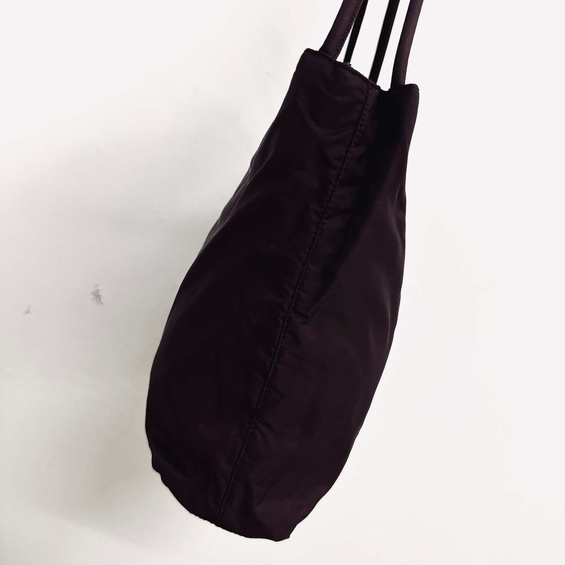 Prada Tessuto Dark Brown Classic Logo Nylon Shopper Shoulder Tote Bag