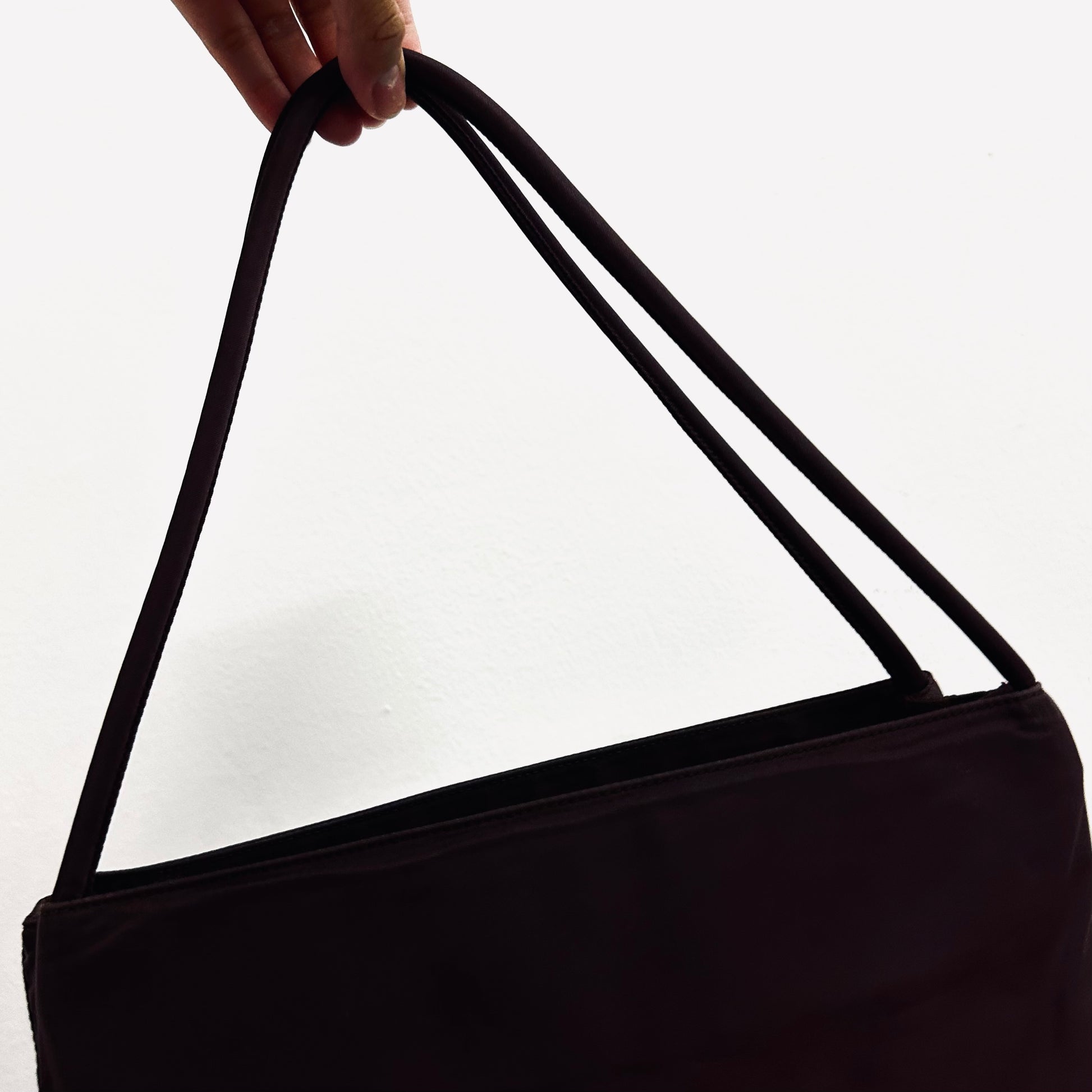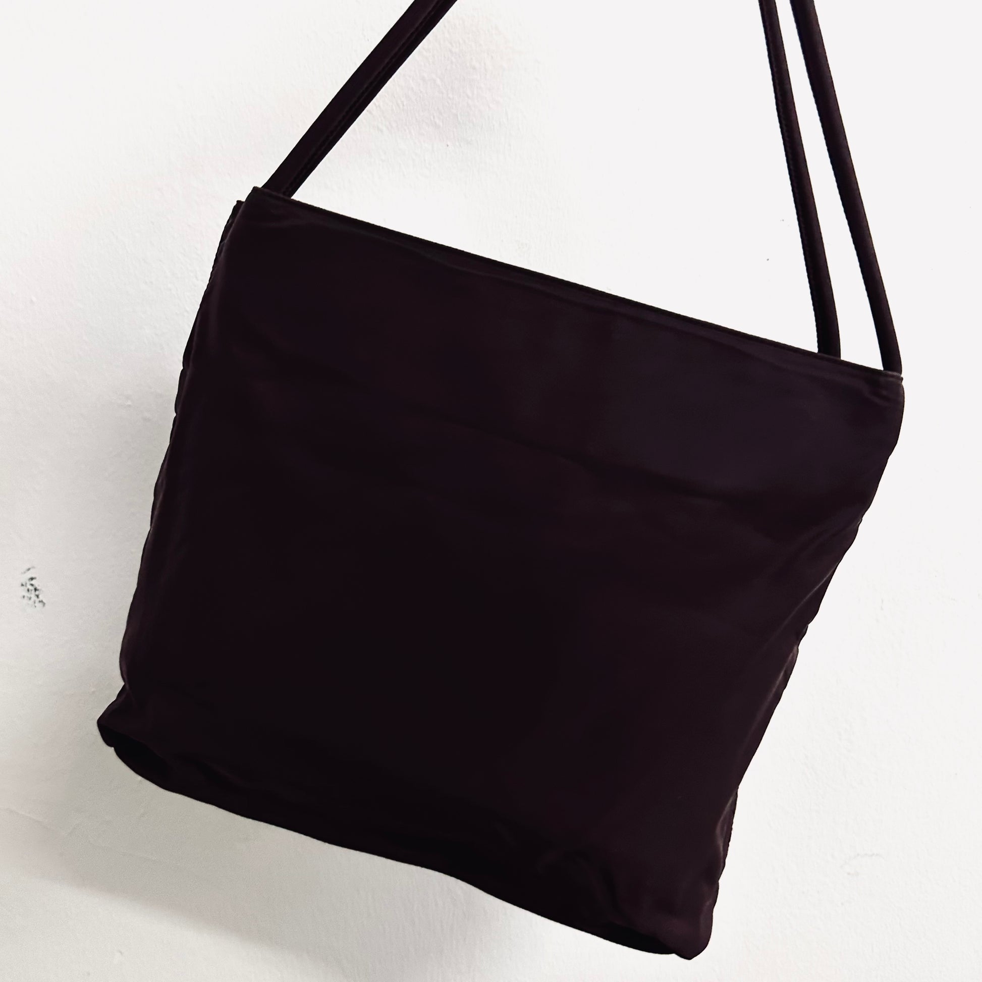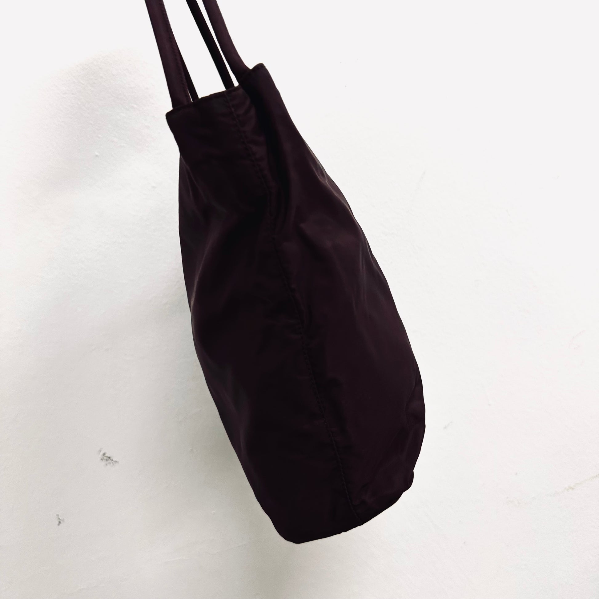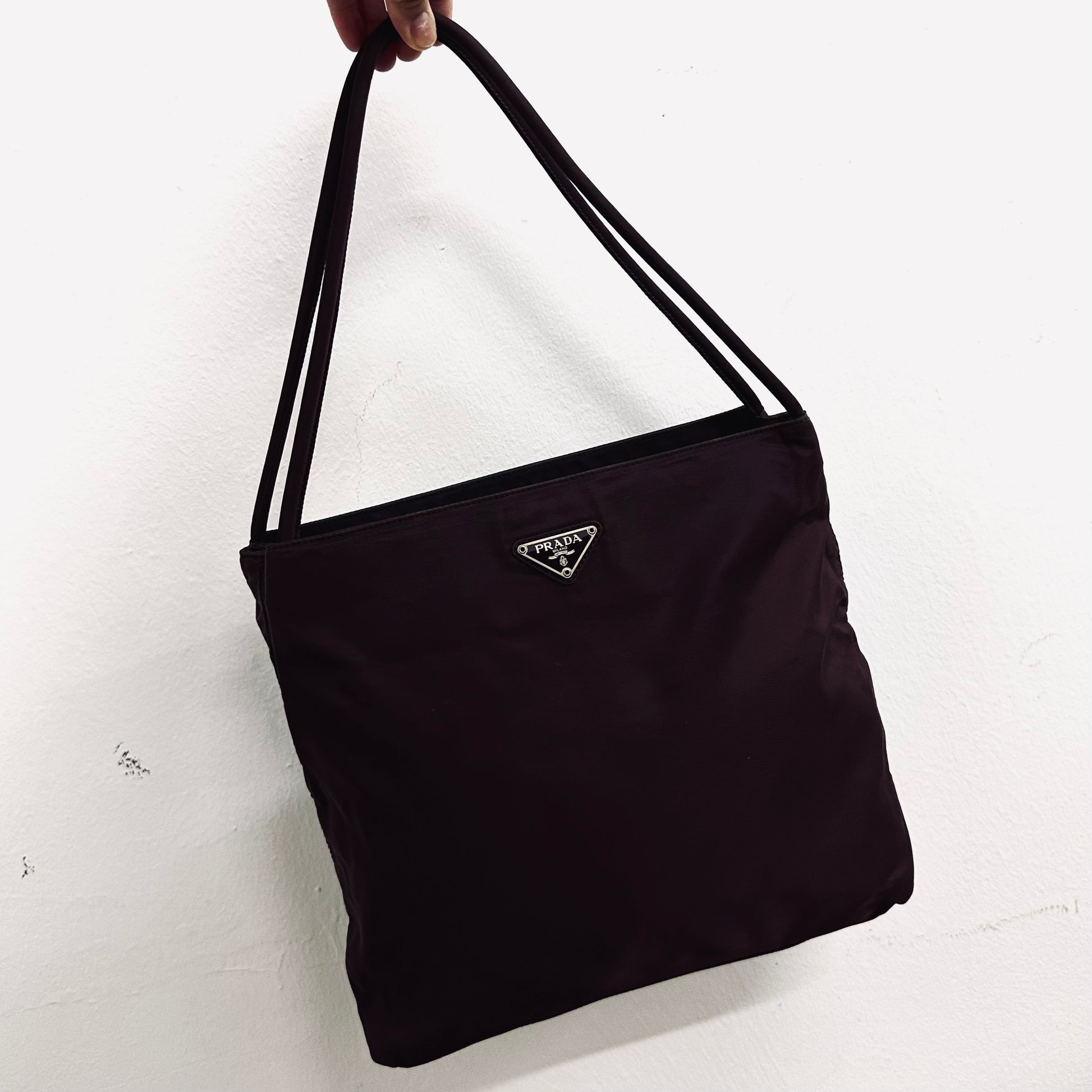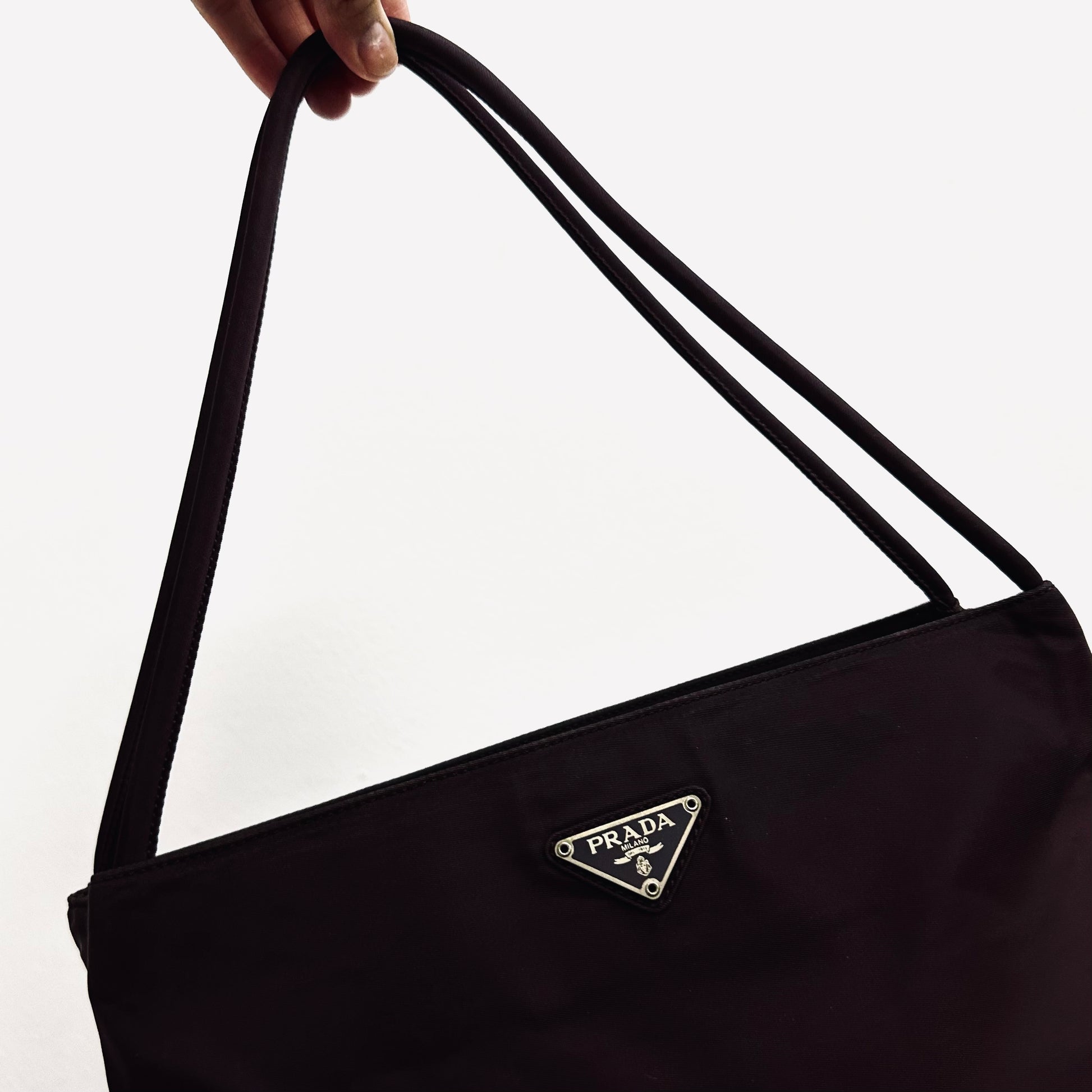 Prada Tessuto Dark Brown Classic Logo Nylon Shopper Shoulder Tote Bag