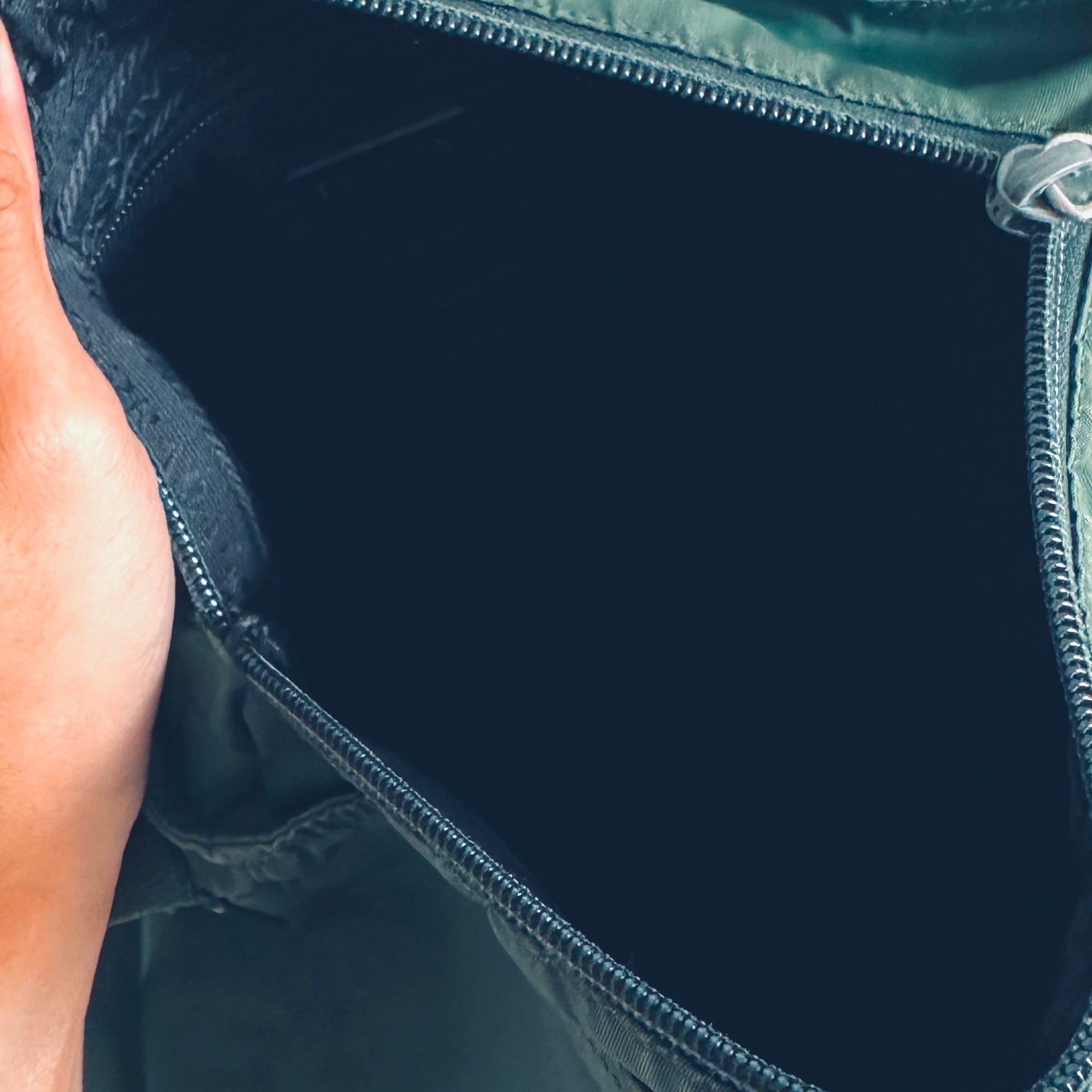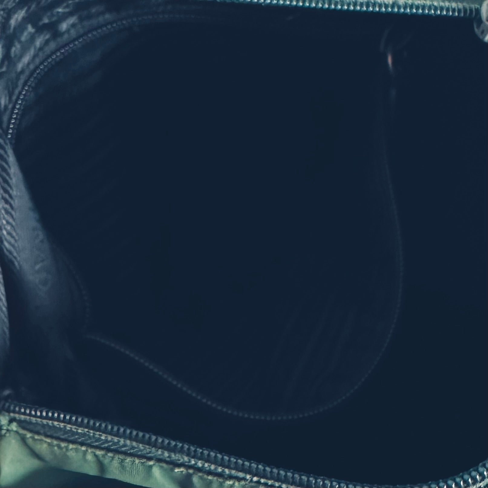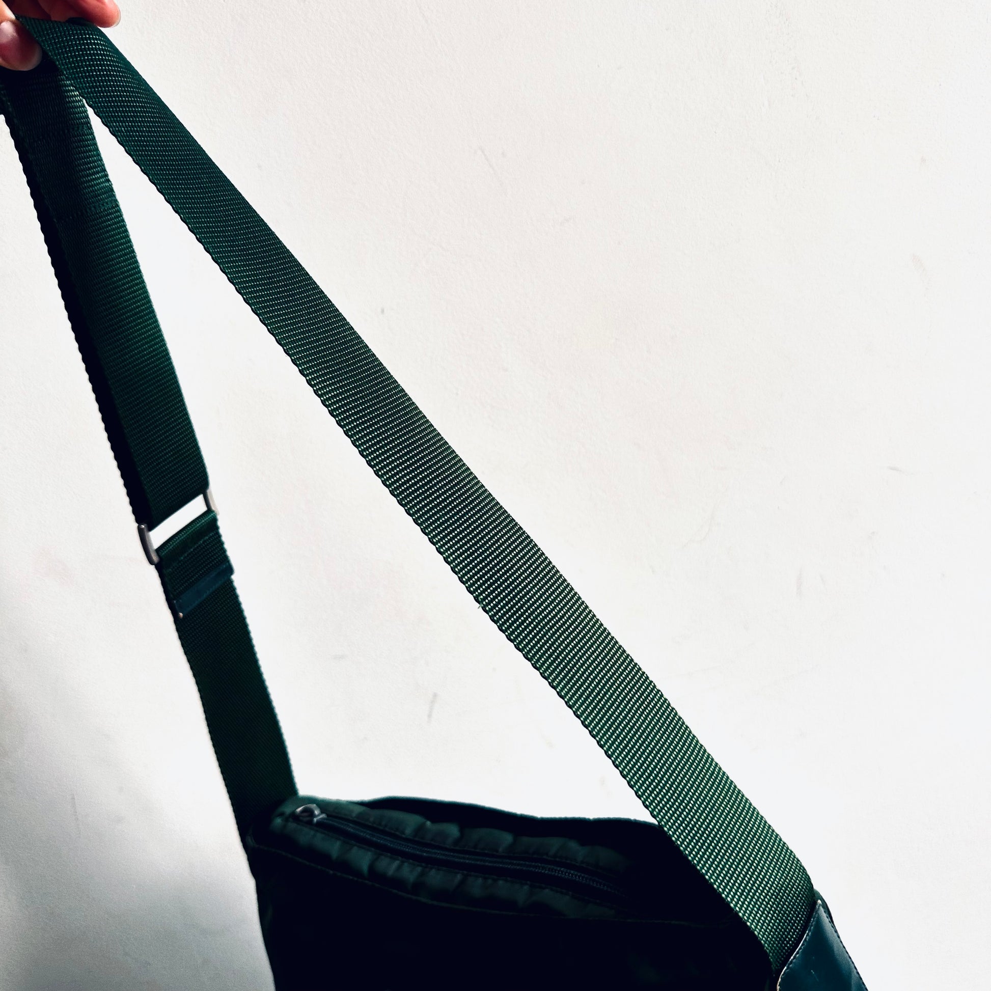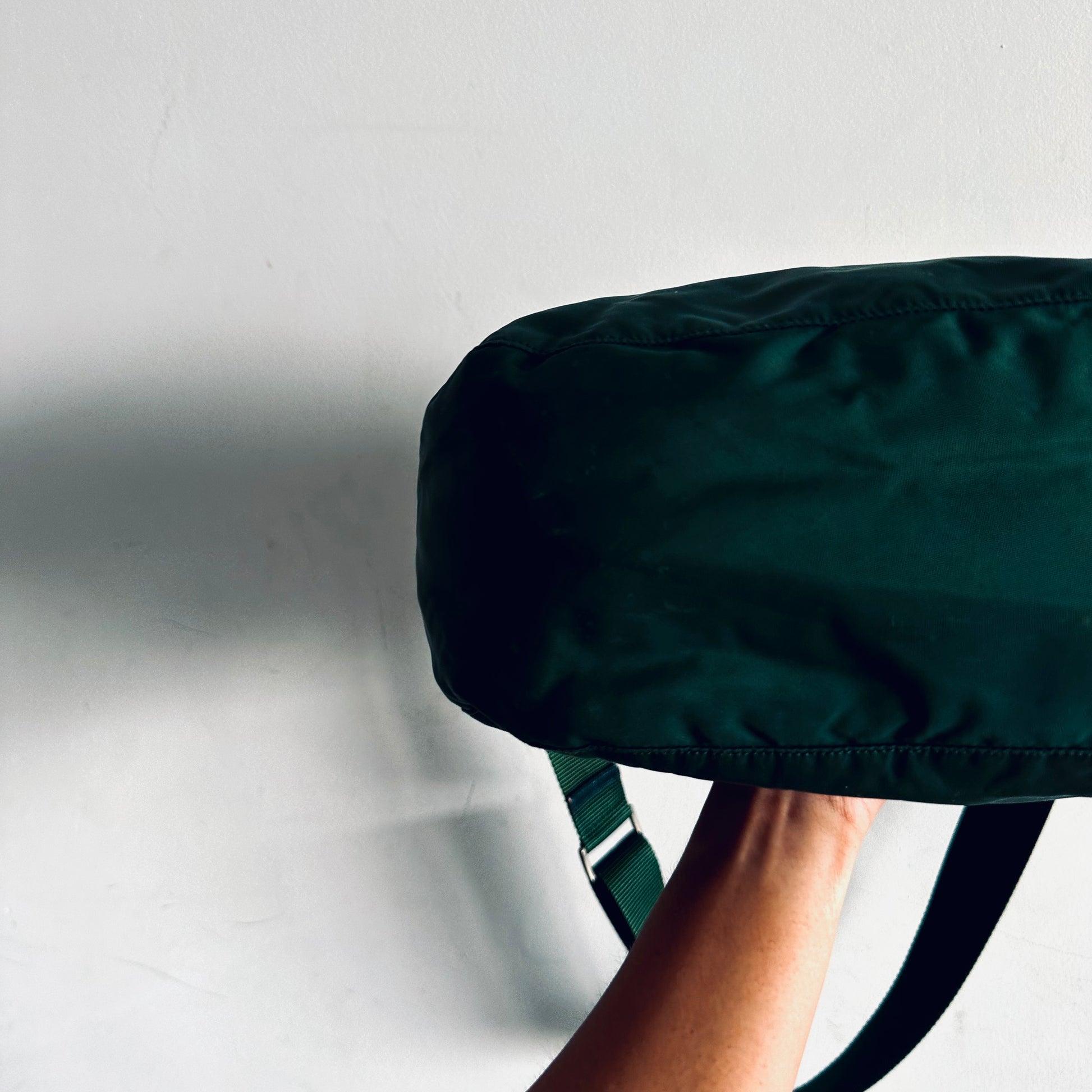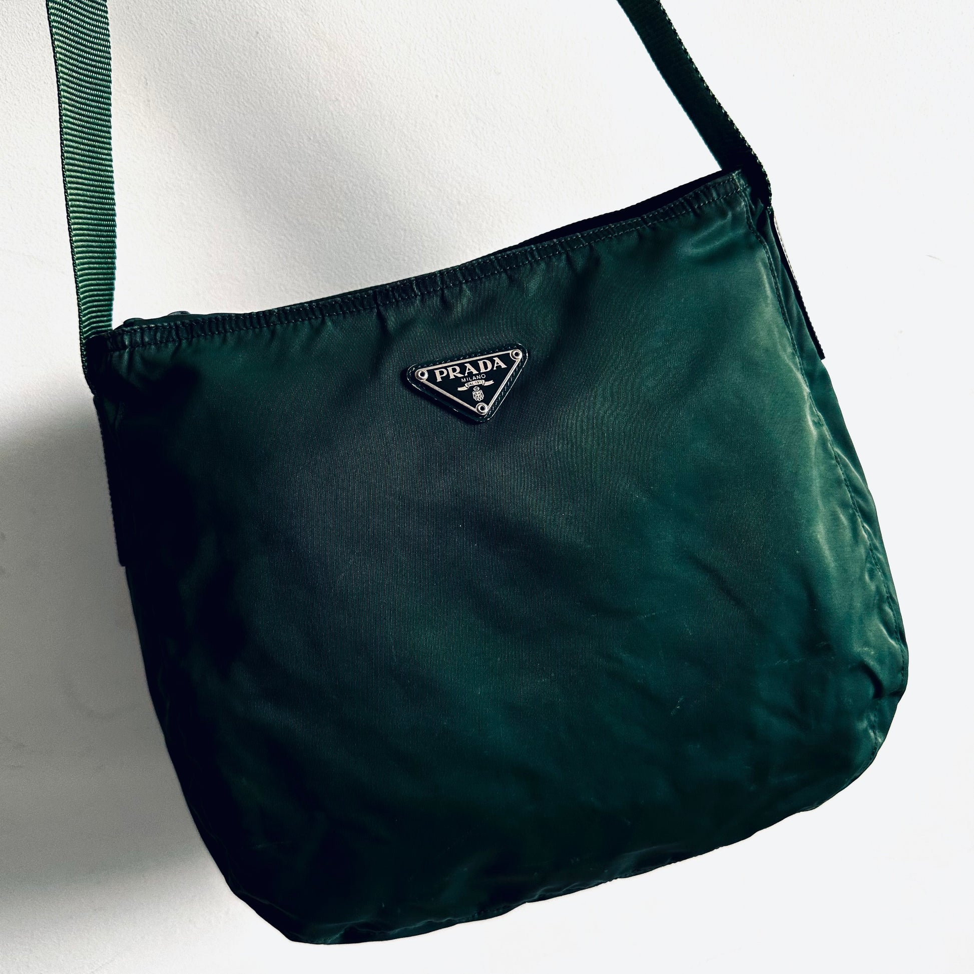 Prada Tessuto Dark Green Classic Logo Nylon Hobo Baguette Shoulder Sling Bag