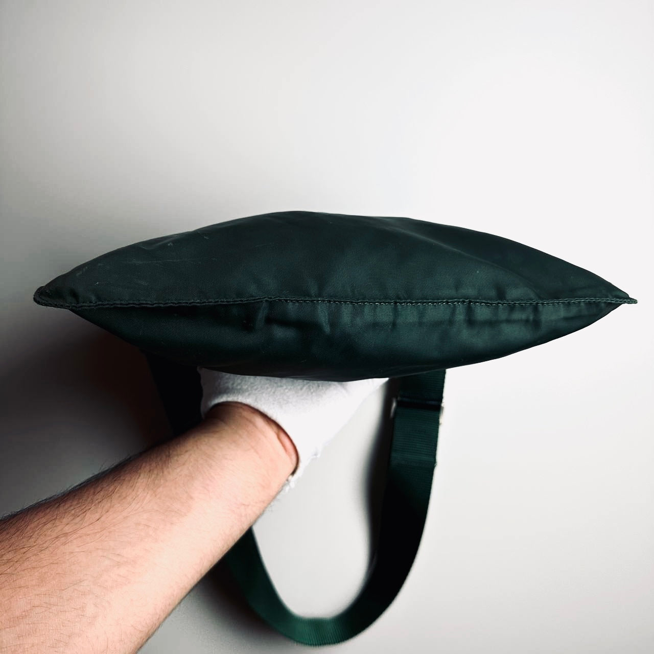 Prada Tessuto Dark Green Monogram Logo Nylon Shoulder Sling Bag
