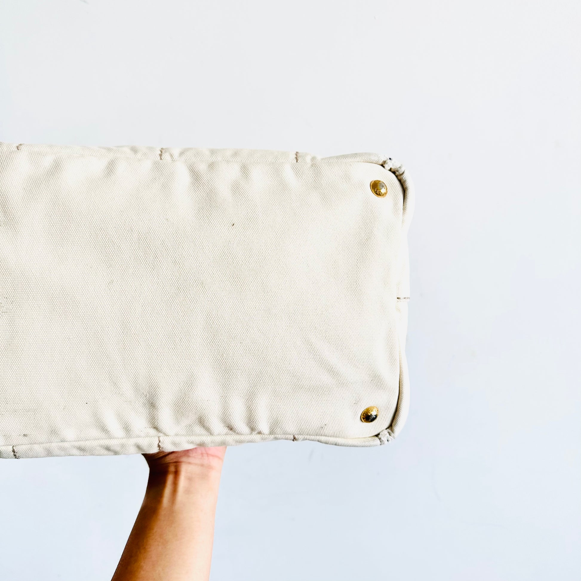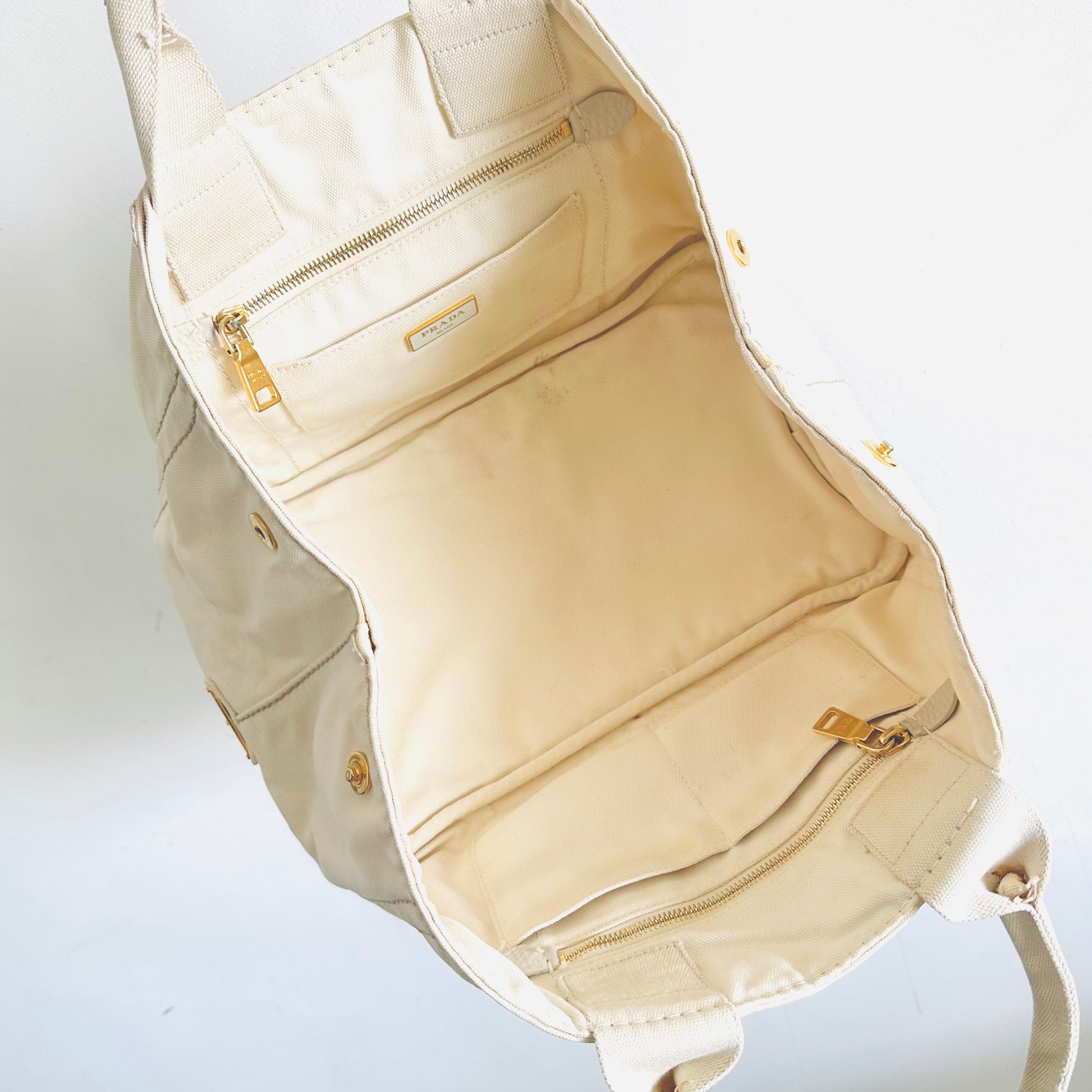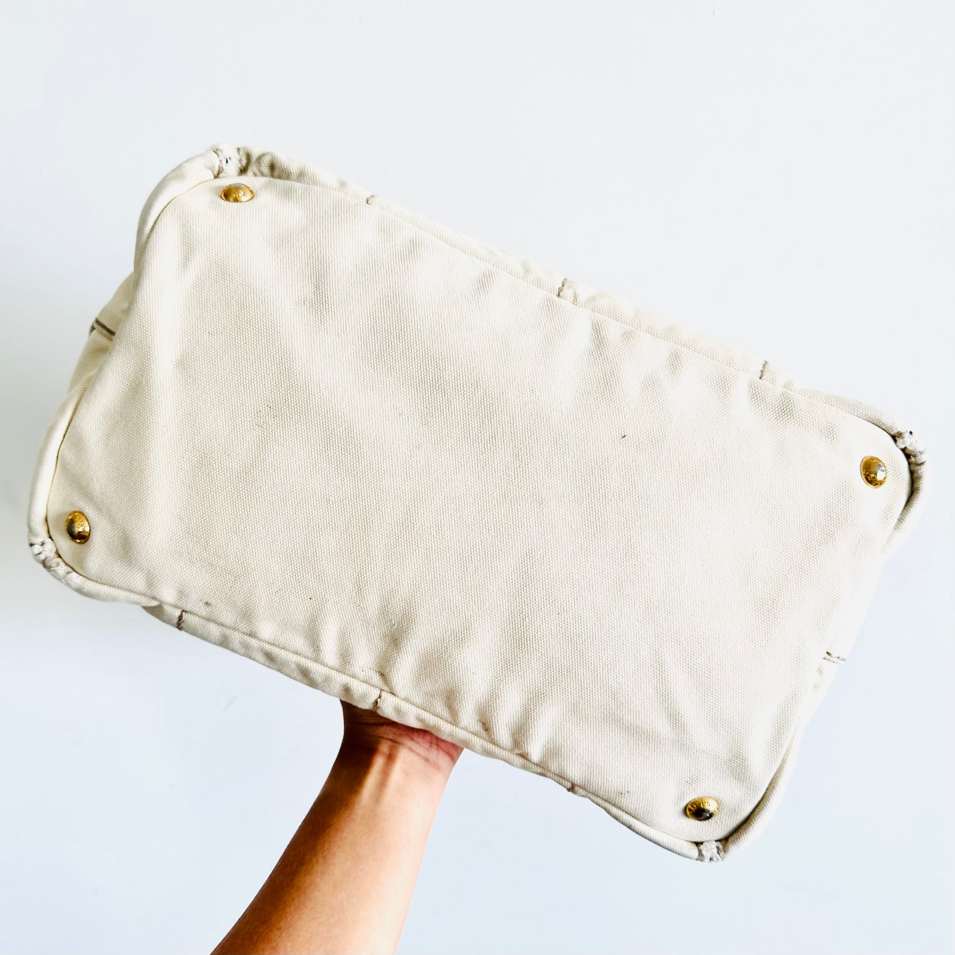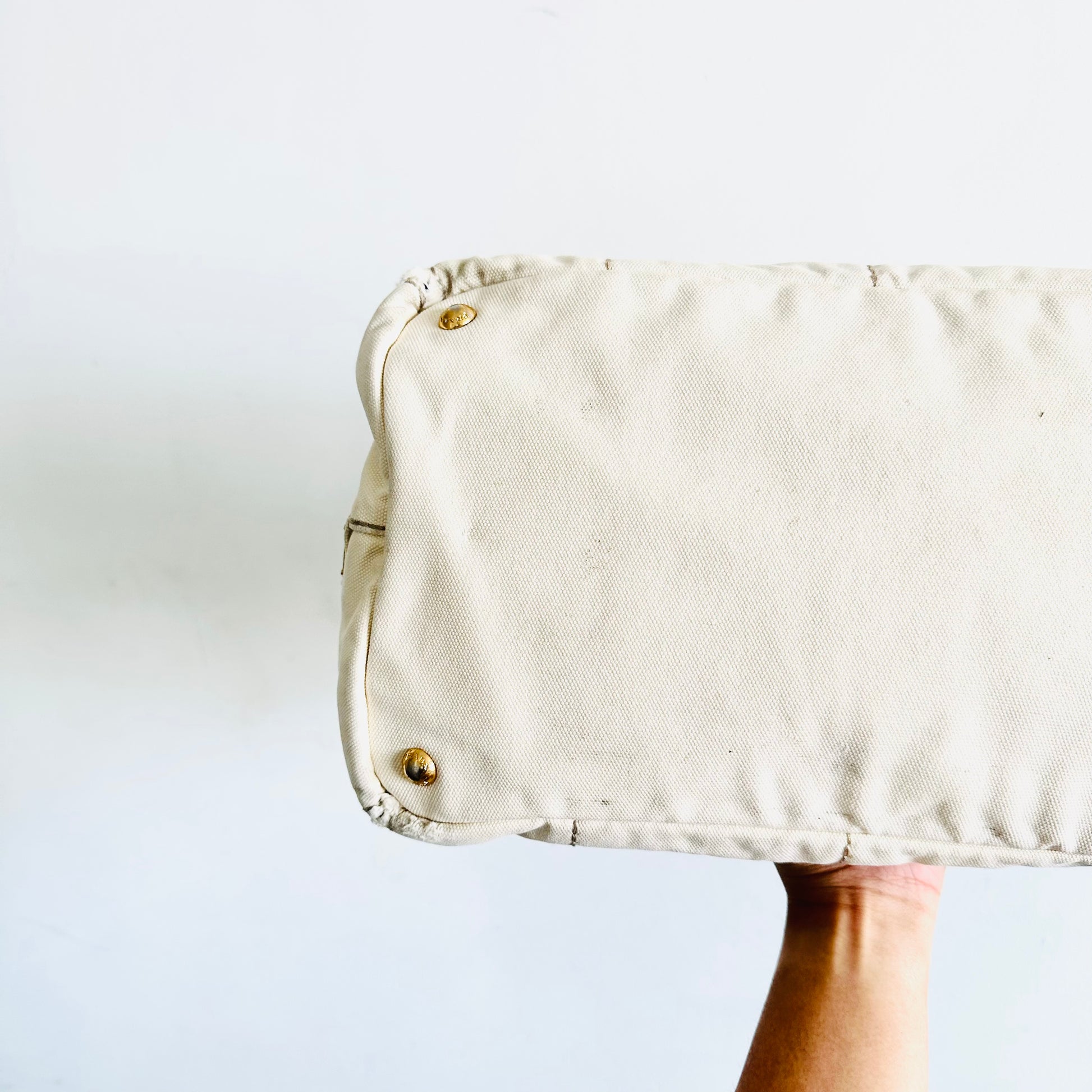 Prada White GHW Canapa Classic Logo Structured Shopper Tote Bag