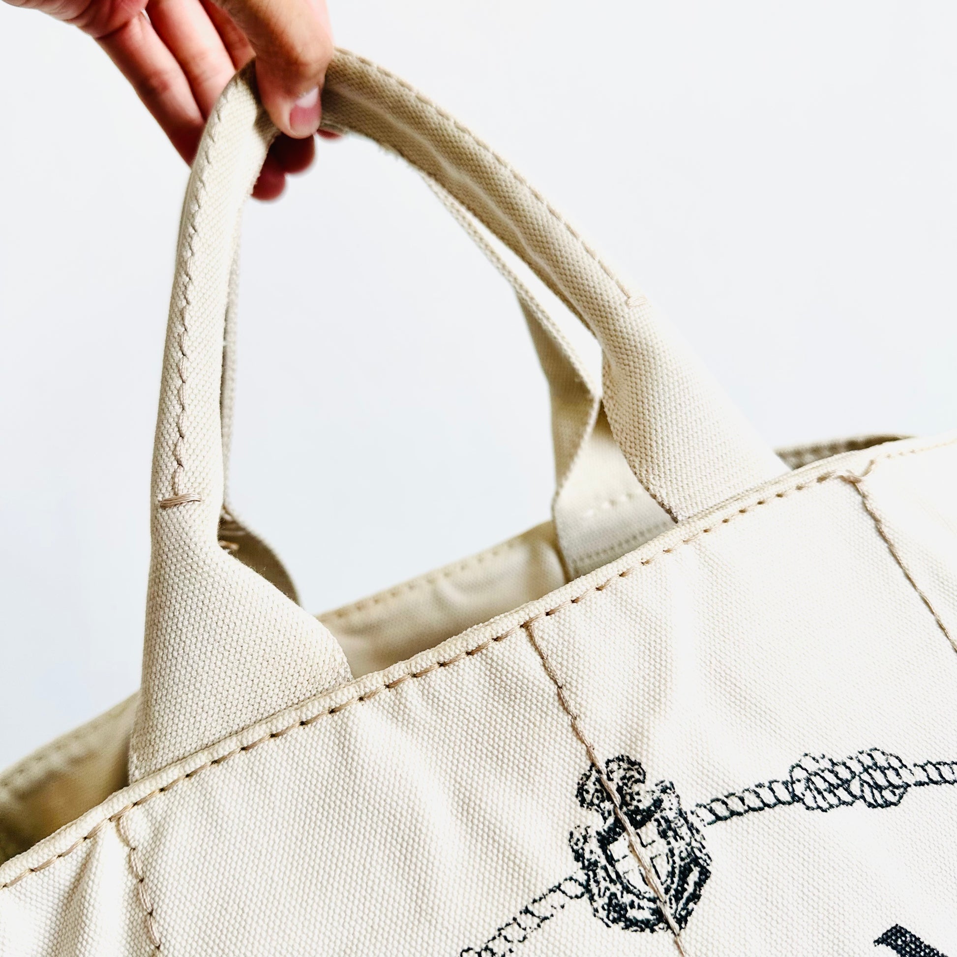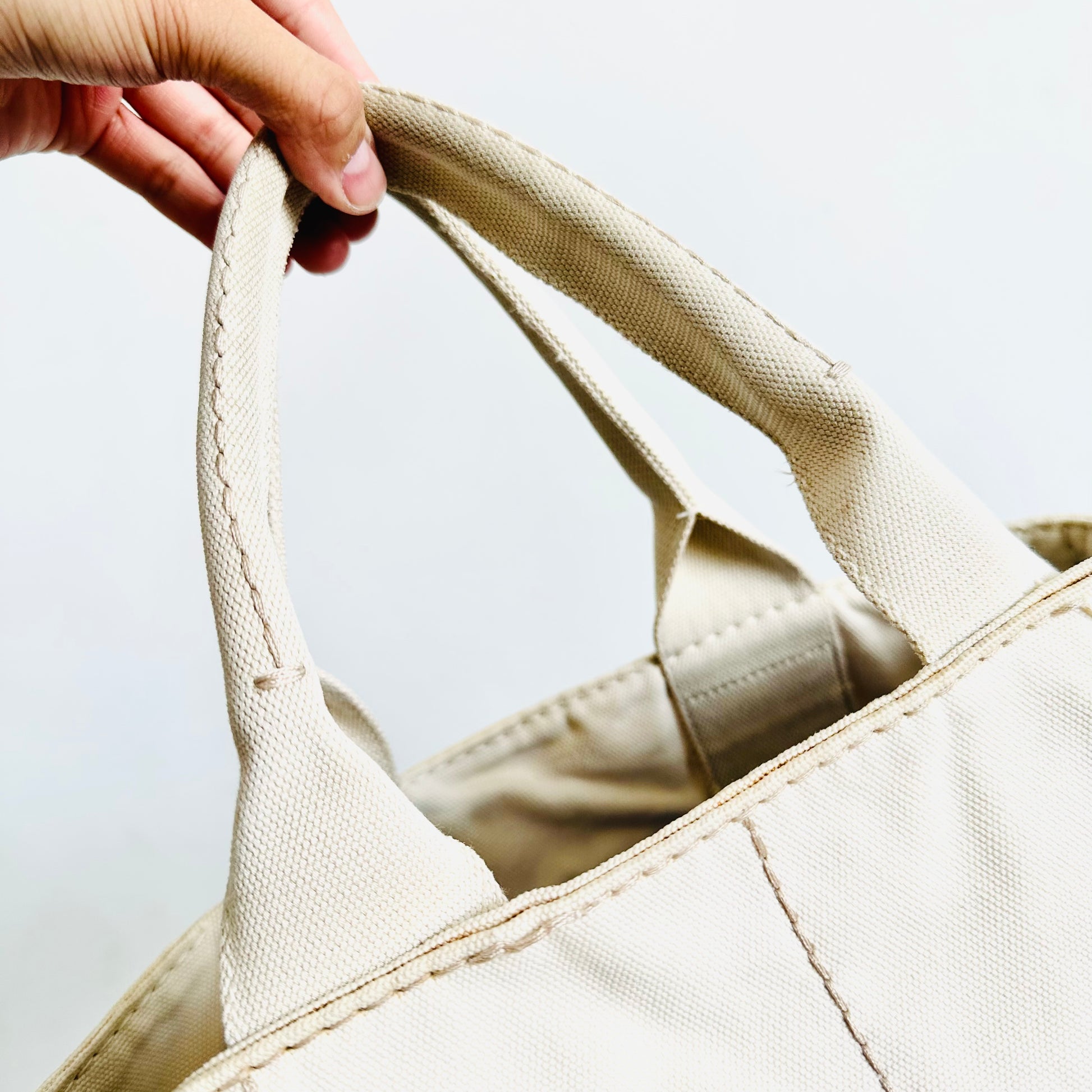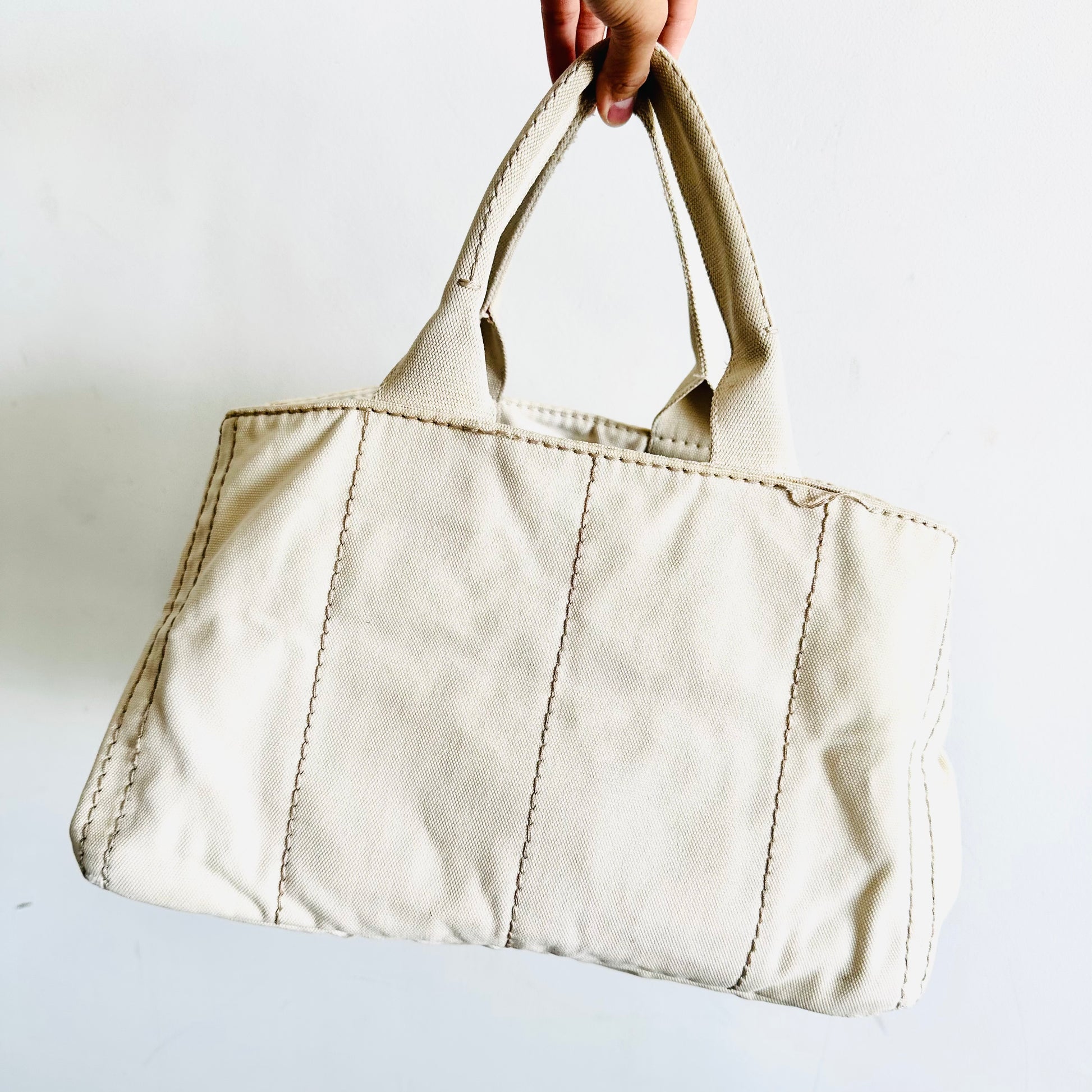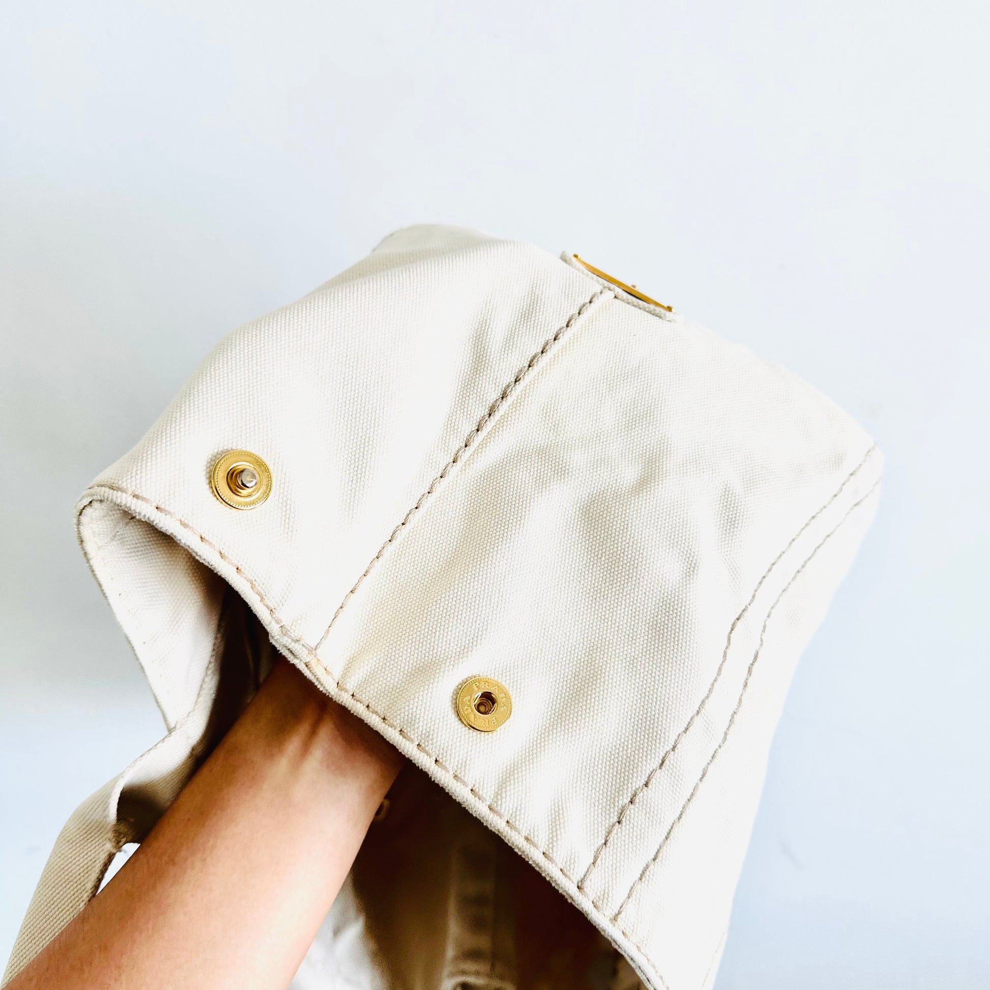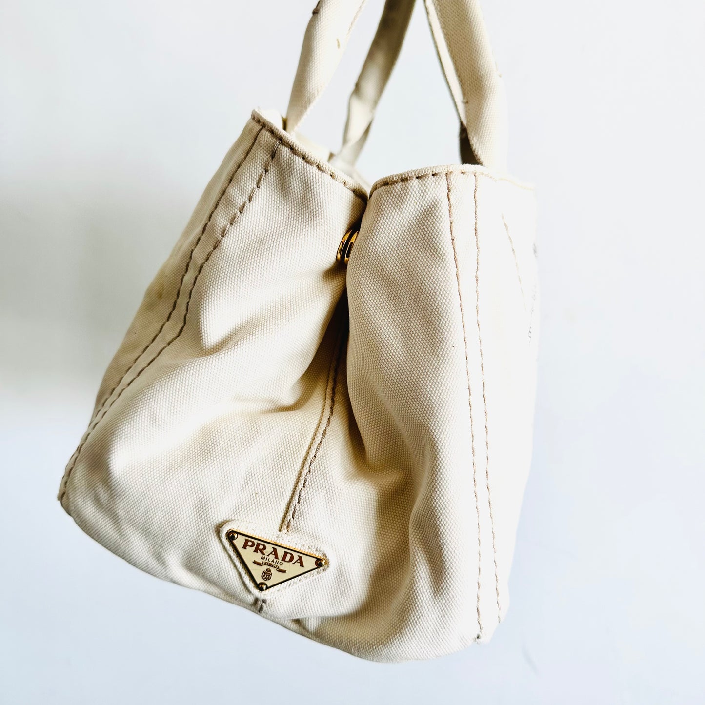 Prada White GHW Canapa Classic Logo Structured Shopper Tote Bag