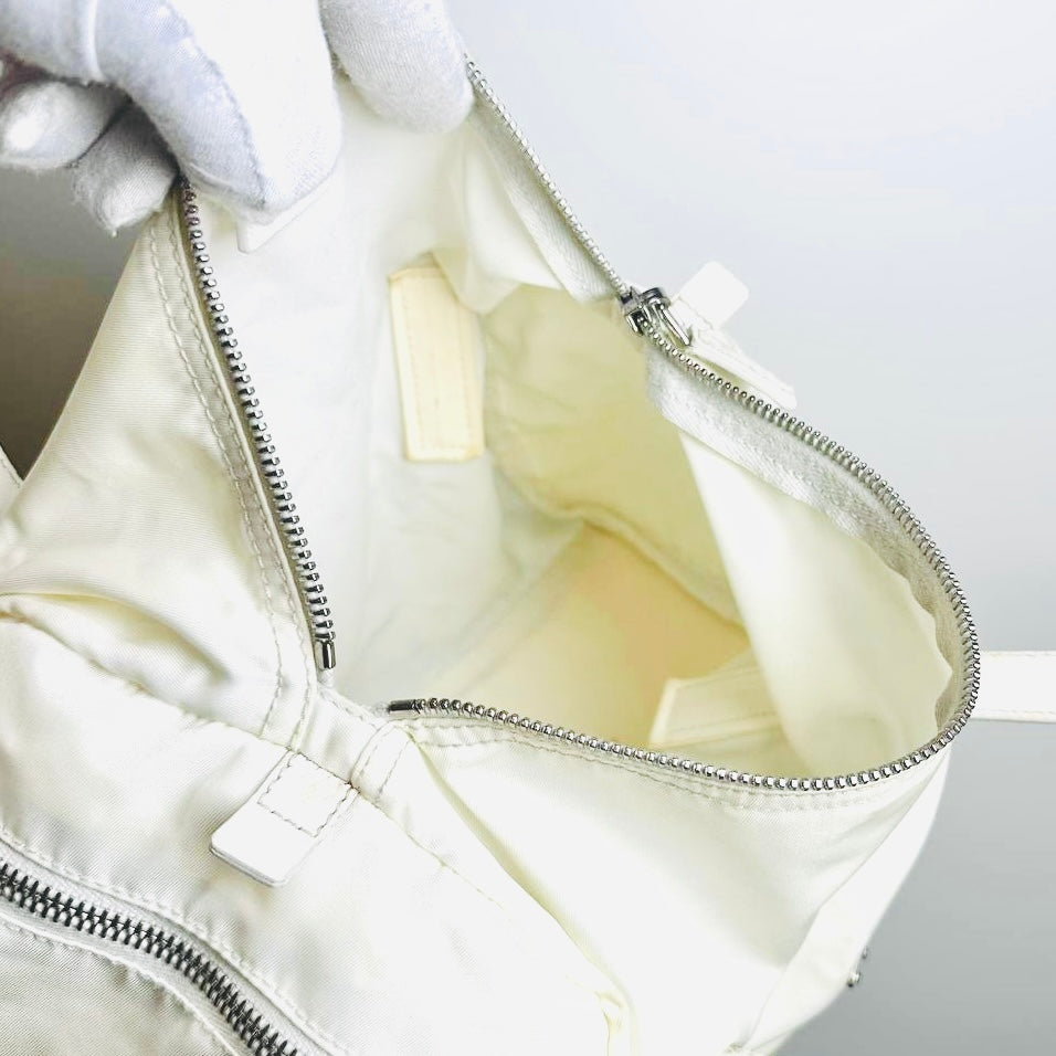 Prada White Tessuto / Leather Monogram Logo Nylon Shopper Shoulder Boston Tote Bag