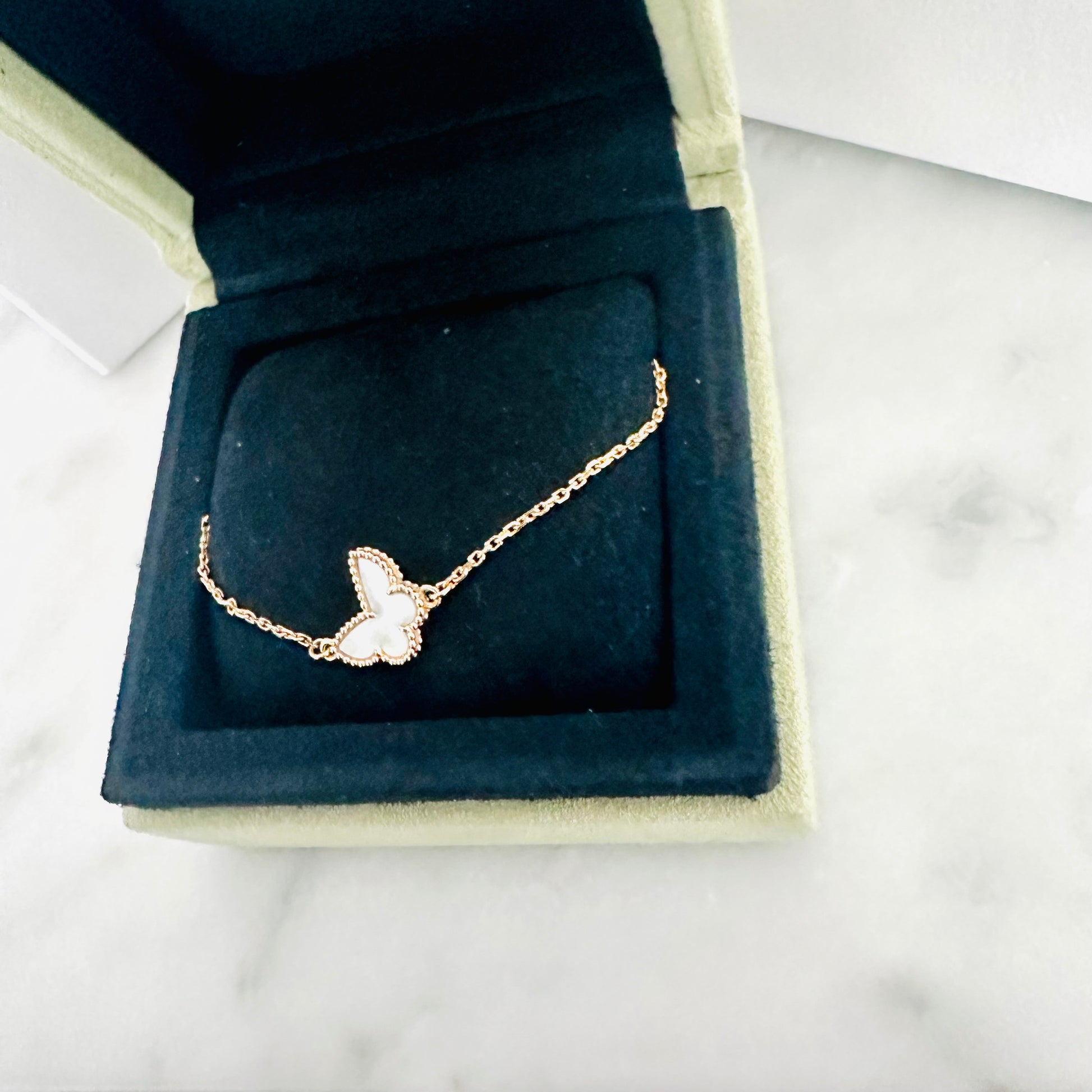 Van Cleef & Arpels VCA Sweet Butterfly / Butterflies Motif MOP Mother Of Pearl 18K Yellow Gold YG Monogram Logo Chain Bracelet