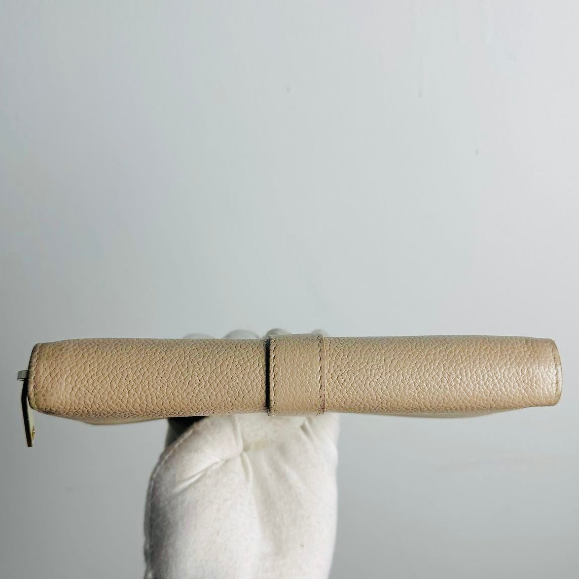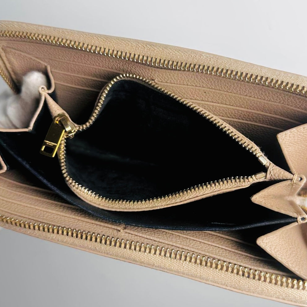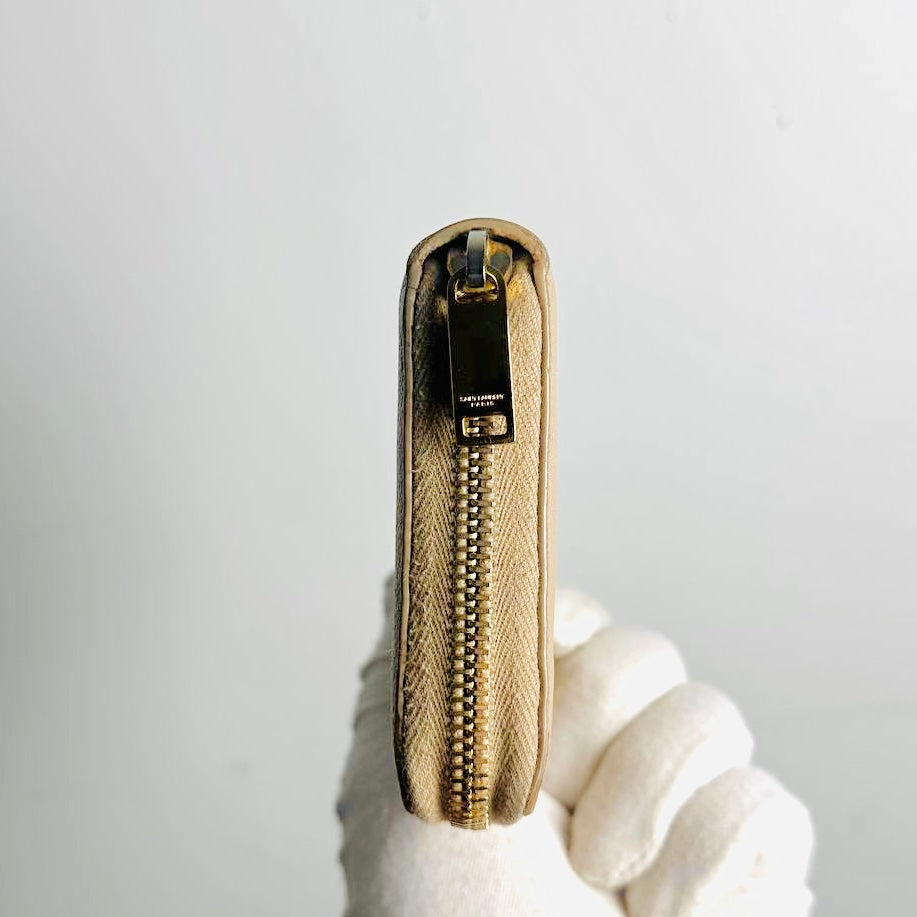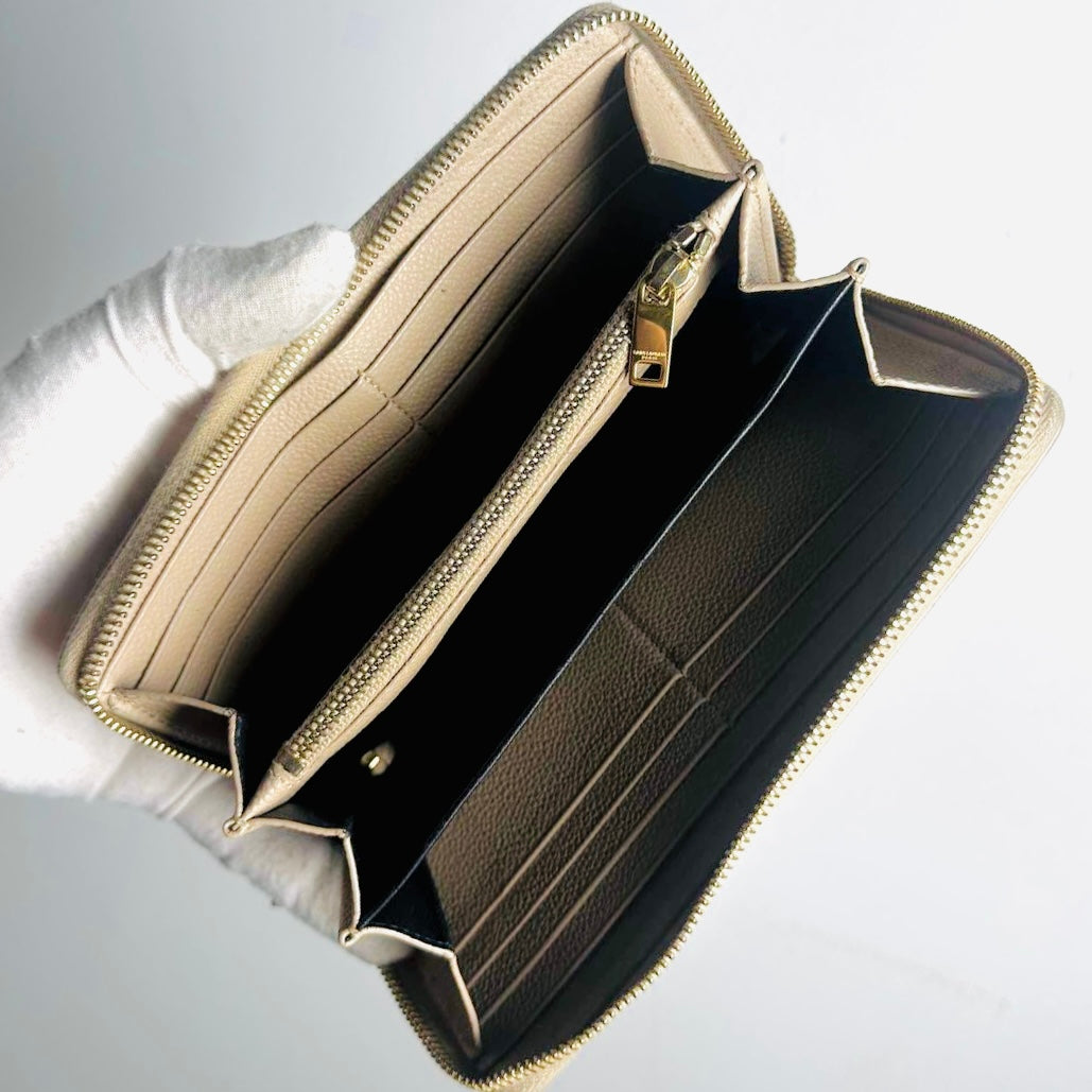 YSL Yves Saint Laurent Beige Taupe GHW Cassandre Grain De Poudre Leather Zippy Zip Around Long Wallet