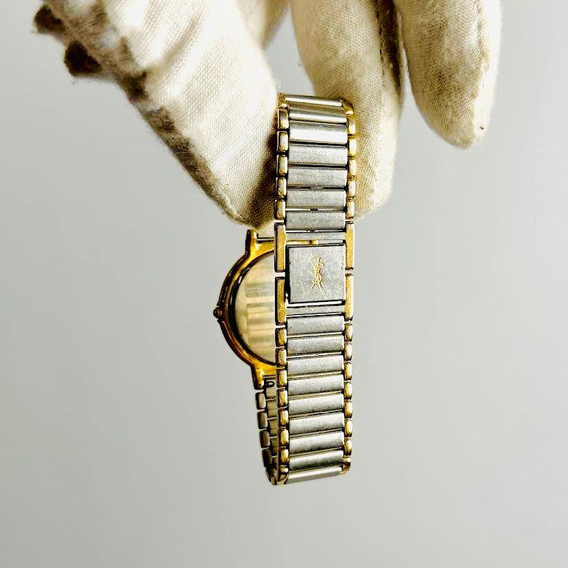 YSL Yves Saint Laurent Gold & Stainless Steel Round Dial Monogram Logo 26MM Quartz Watch