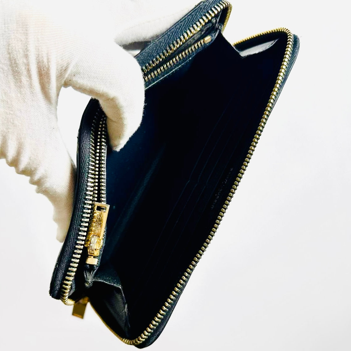 YSL Yves Saint Laurent Navy Blue GHW Cassandre Grain De Poudre Leather Zippy Zip Around Long Wallet
